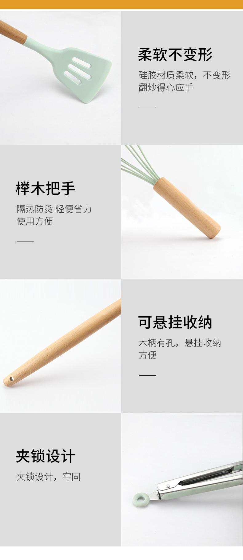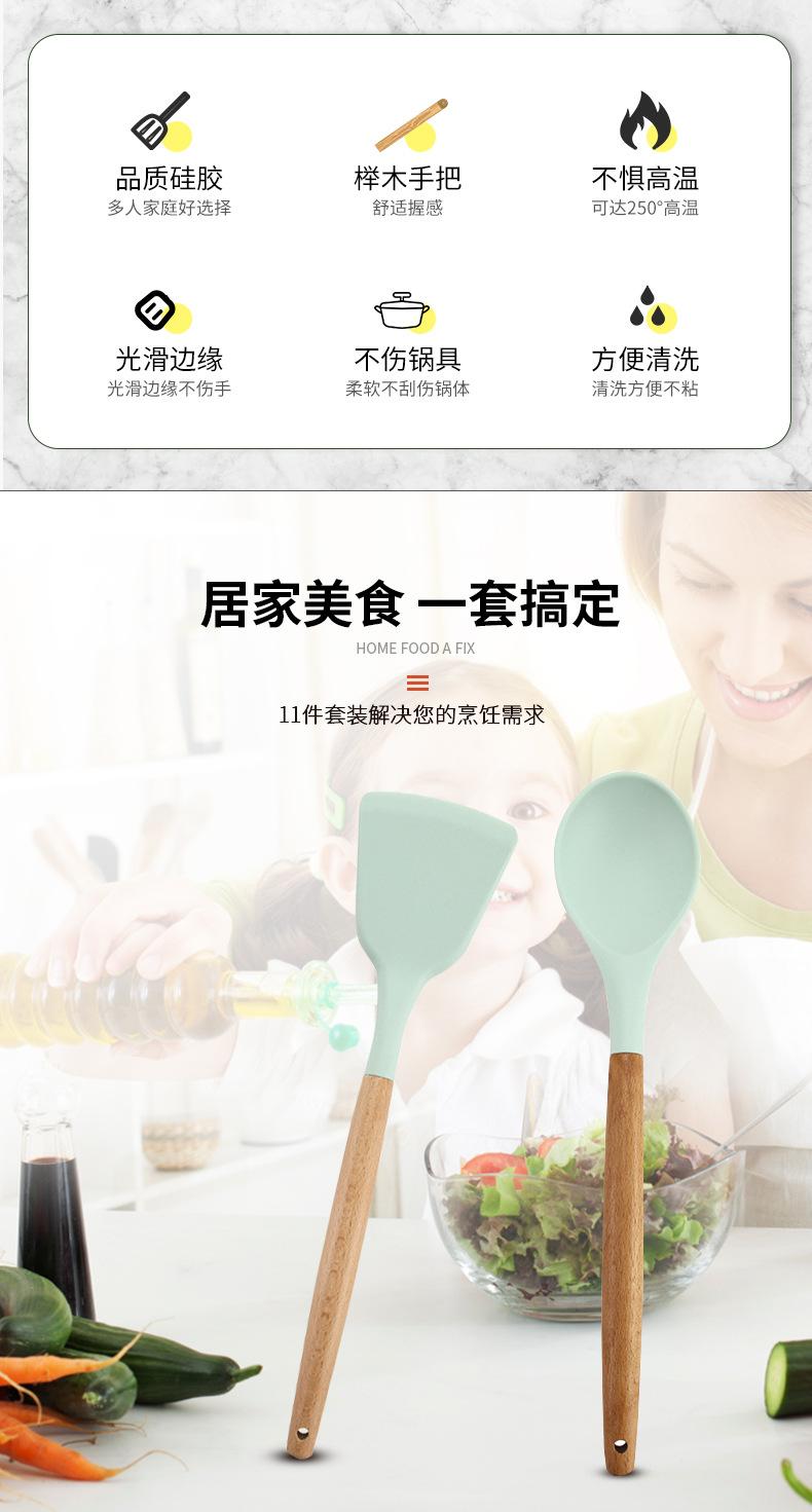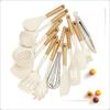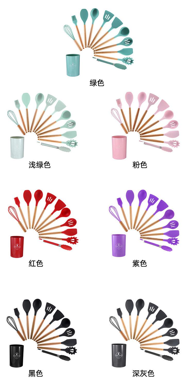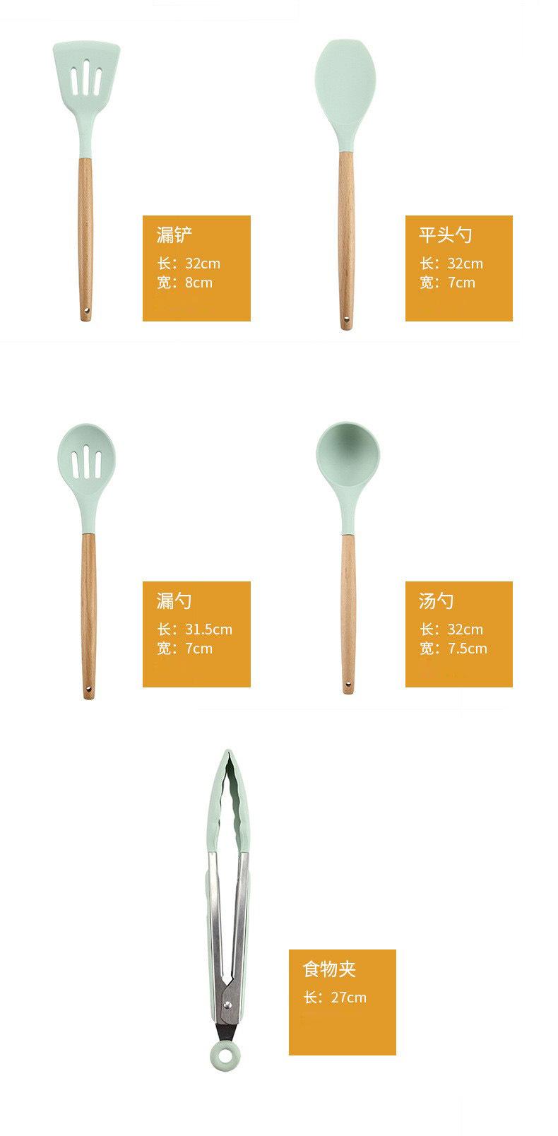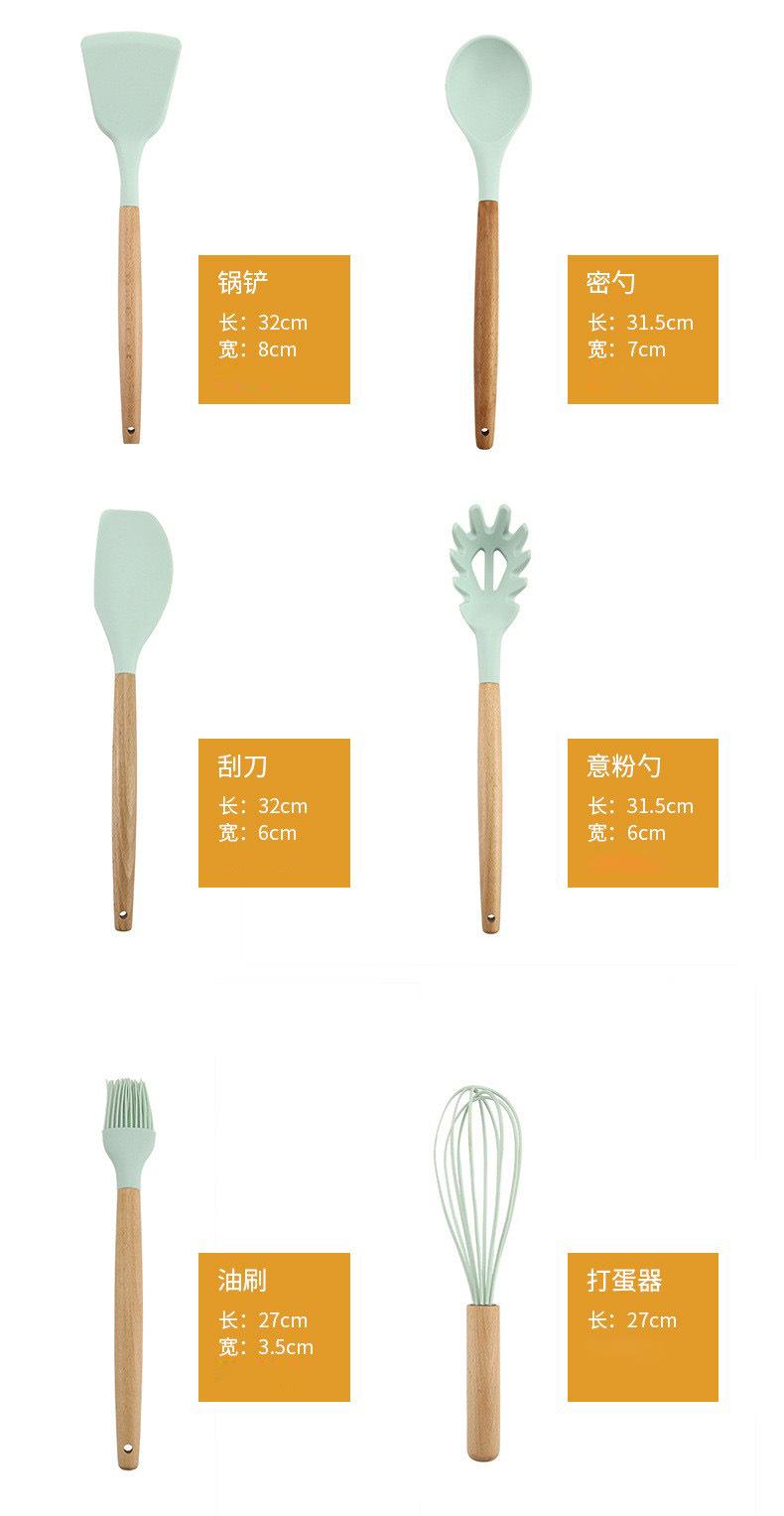Juego de utensilios de cocina de 12 piezas con mango de madera de silicona, antiescaldamiento, resistente a altas temperaturas, antiadherente, para ollas, palas, cucharas y pinzas, para utensilios de cocina, cubos para hornear.