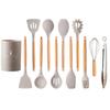 Juego de Utensilios de Cocina de Silicona con Mango de Madera Juego de 12 Piezas Resistente a Altas Temperaturas Antiadherente Espátula Cuchara Pinza Cubo para Utensilios de Cocina Utensilios para Hornear