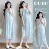 Vestido de mujer embarazada, moda, suelto, talla grande, largo por encima de la rodilla, vestido de camiseta de algodón, vestido de verano de estilo coreano para mujeres embarazadas.