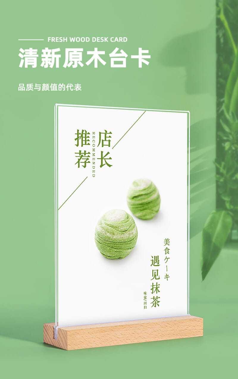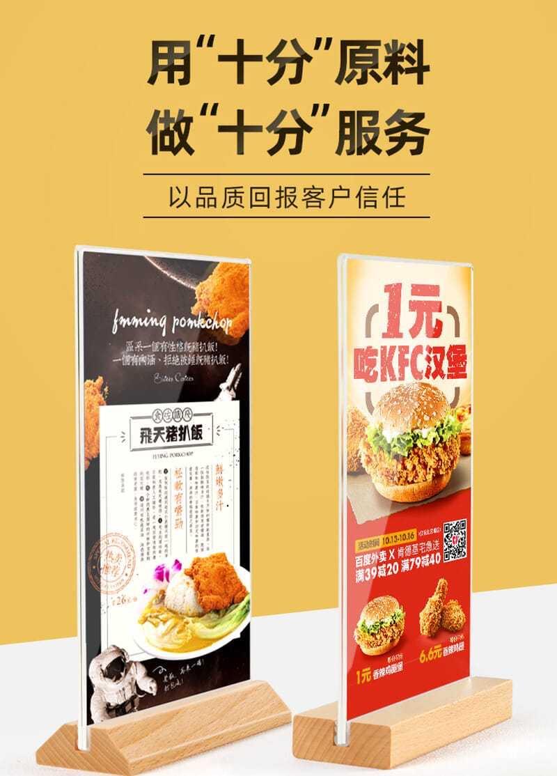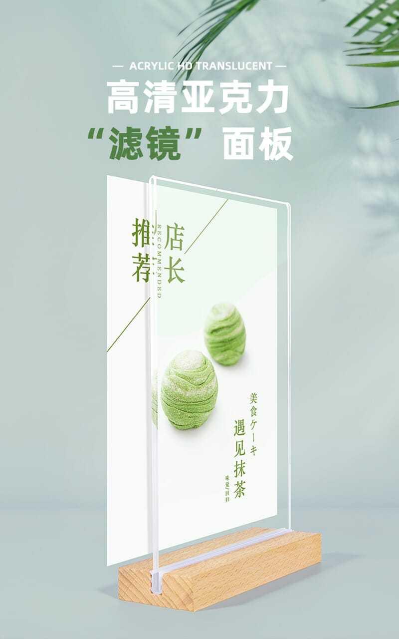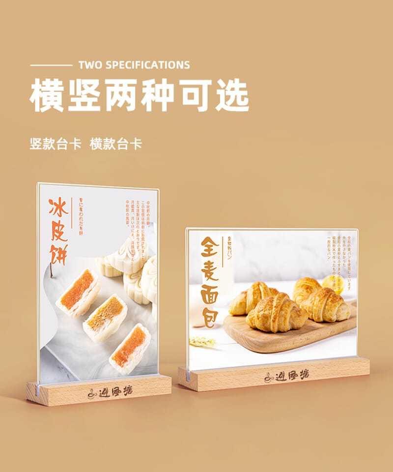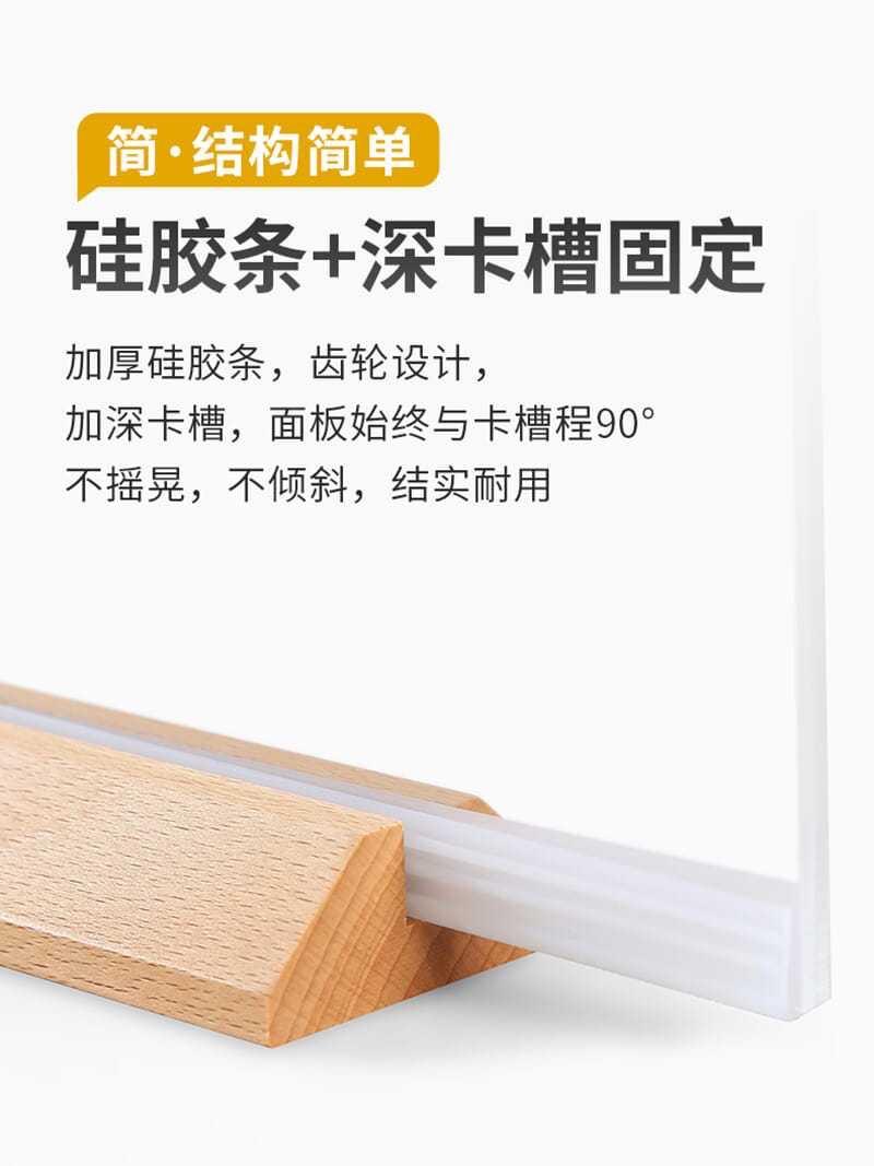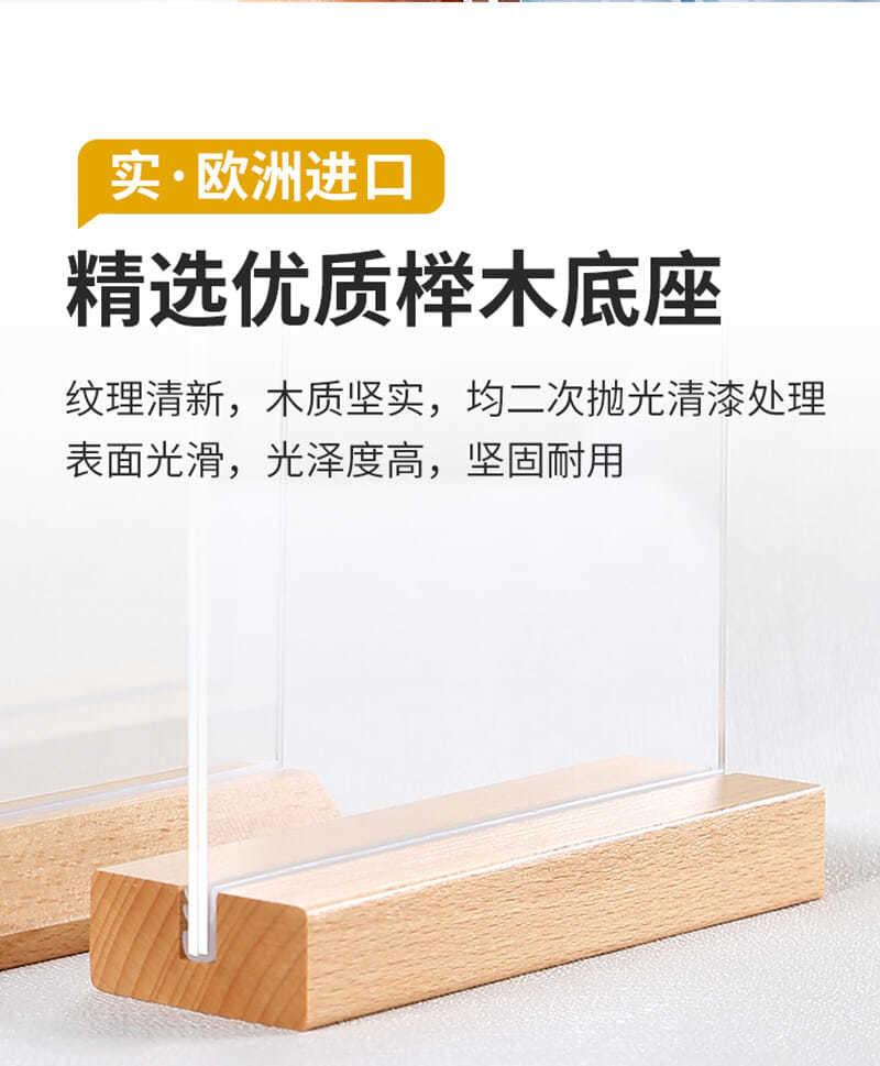 Soporte de tarjeta de mesa de acrílico personalizado, soporte de exhibición vertical de doble cara de tarjeta de mesa A4, letrero de mesa A5, tarjeta de mesa de madera maciza de haya de alta gama