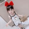 Traje de verano para niñas, popular en línea, estilo extranjero, para niños, personalizado, de marca de moda, con dibujos animados coreanos, chaleco a juego, pantalones cortos con tirantes.