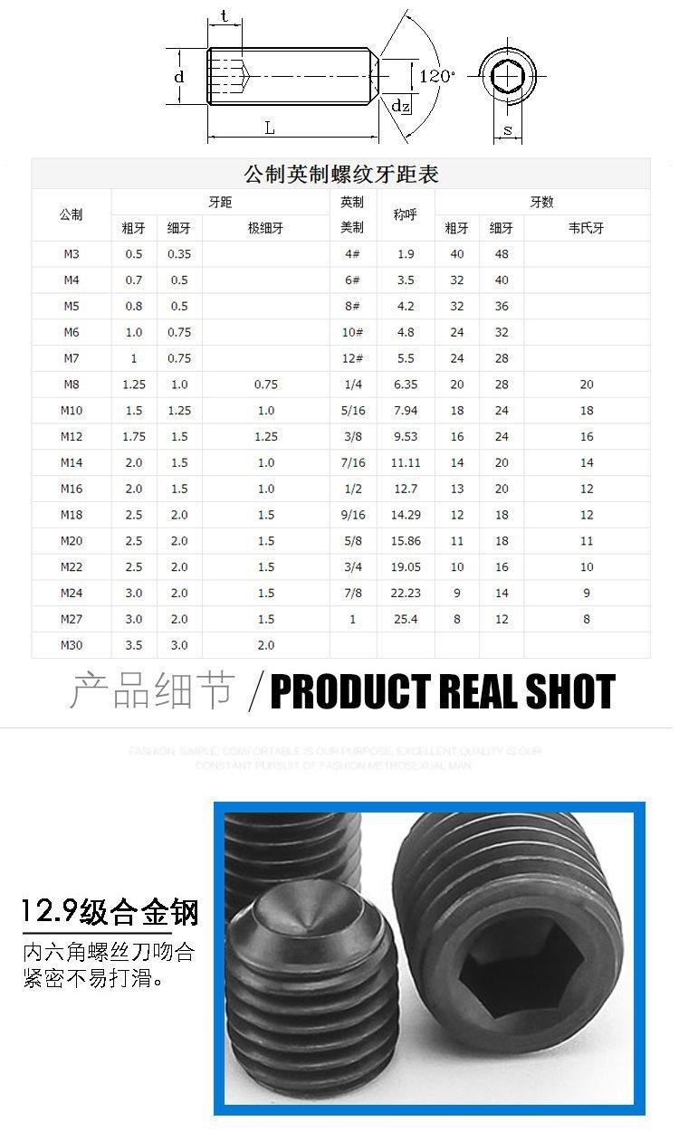Tornillo de máquina sin cabeza americano de grado 12.9, tornillo de fijación hexagonal 4#-40 6#-32 8#-32 10#-32