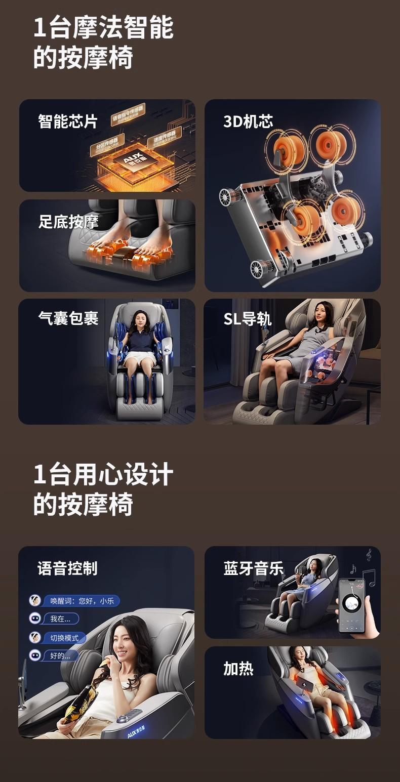 Sillón de masaje Oaks, cuerpo completo, automático, cápsula espacial, eléctrico, de lujo, con riel SL, sofá multifuncional 818A