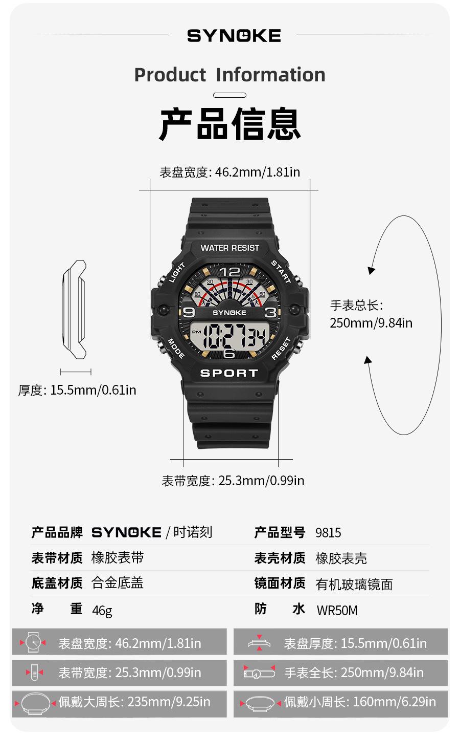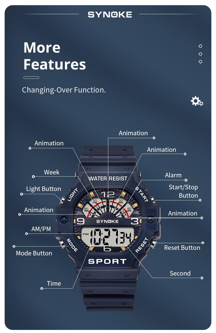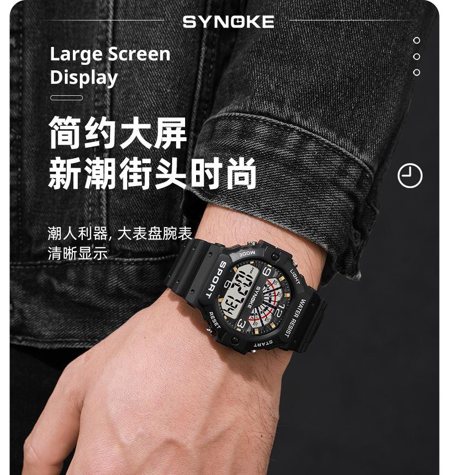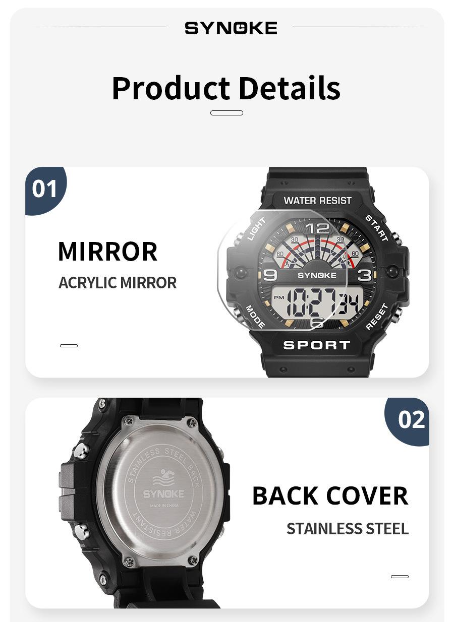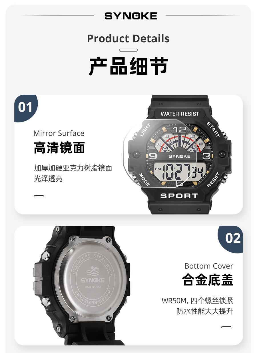 Productos de fábrica SYNOKE Time and Time Classic Retro Square Reloj electrónico deportivo para estudiantes Impermeable para correr para hombres Reloj de pulsera de moda