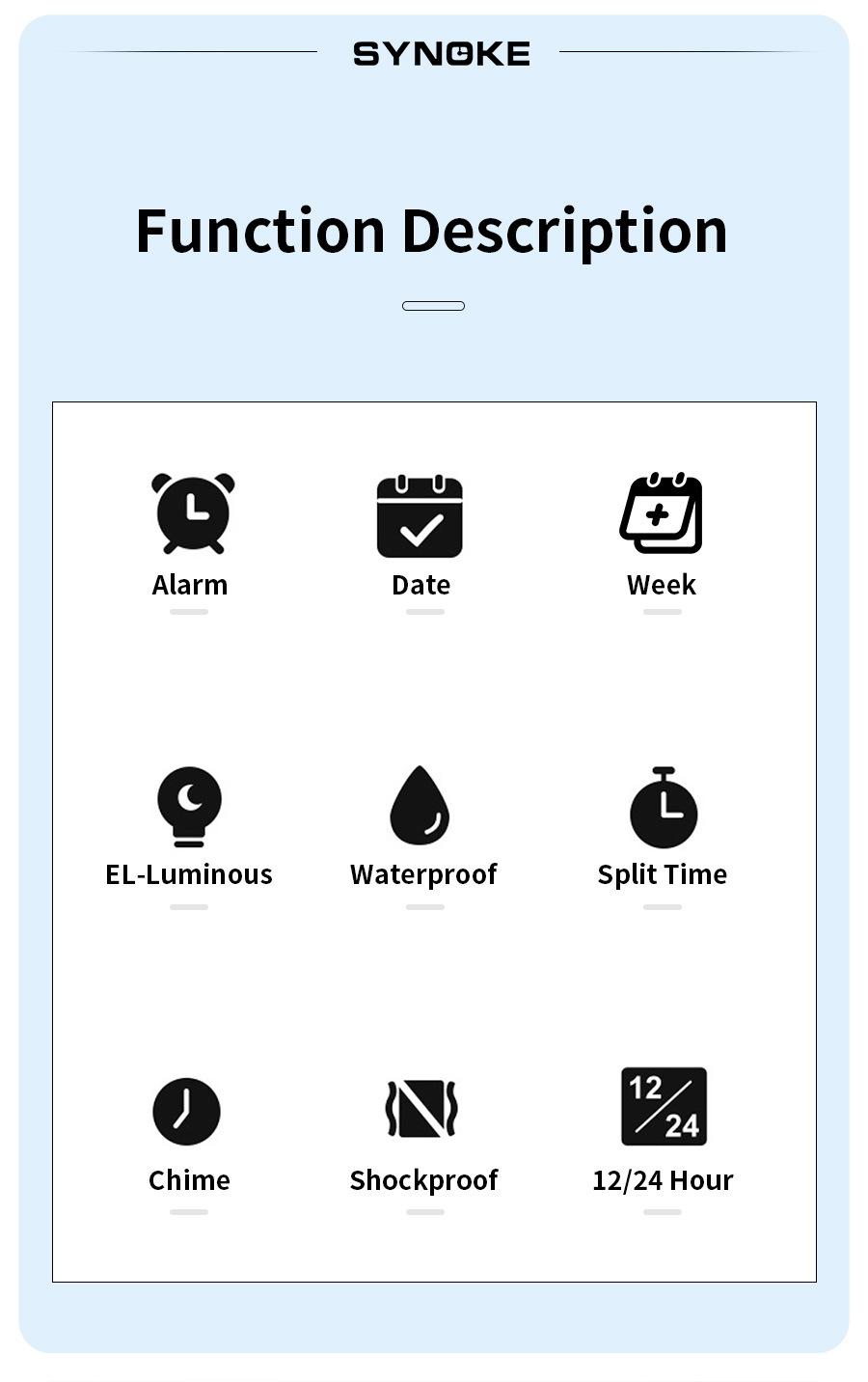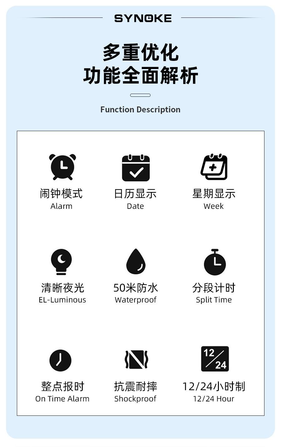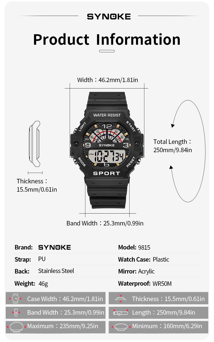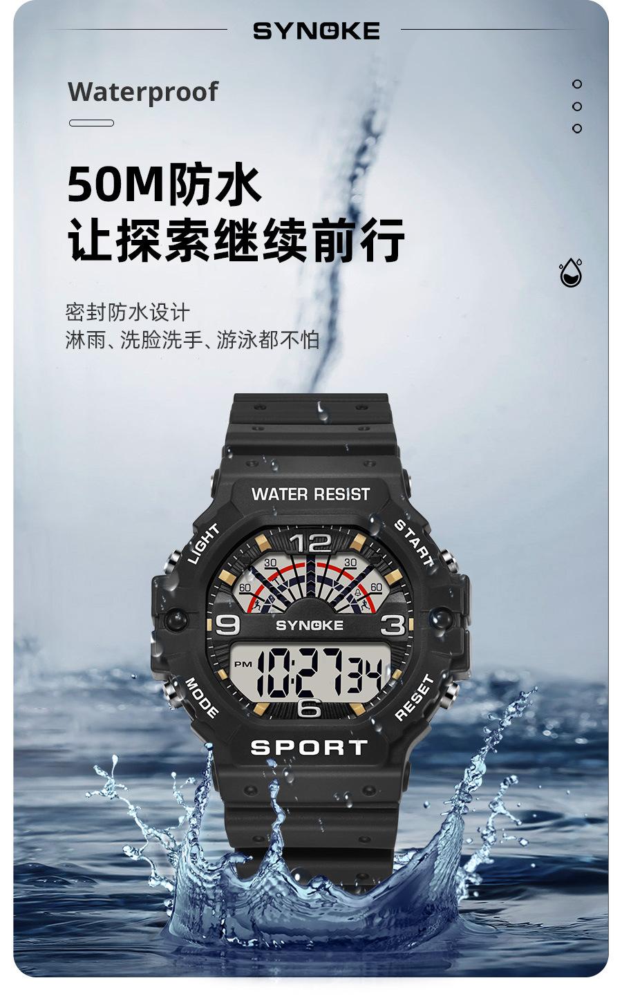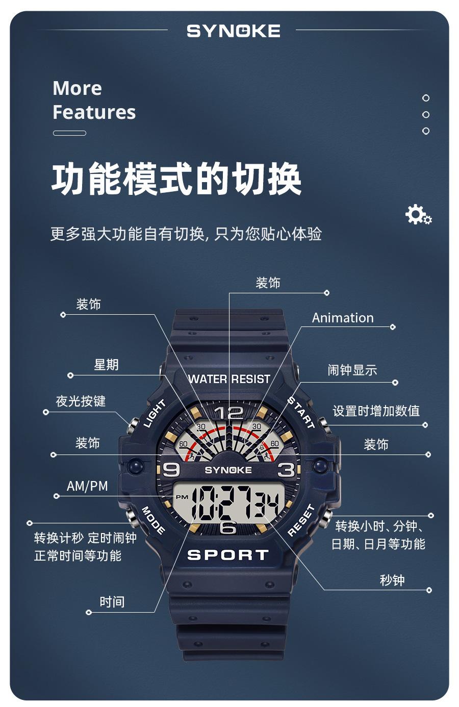 Productos de fábrica SYNOKE Time and Time Classic Retro Square Reloj electrónico deportivo para estudiantes Impermeable para correr para hombres Reloj de pulsera de moda