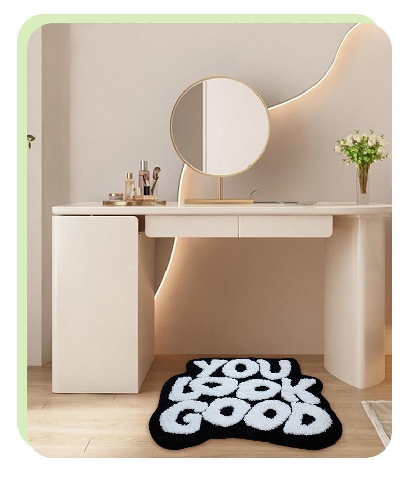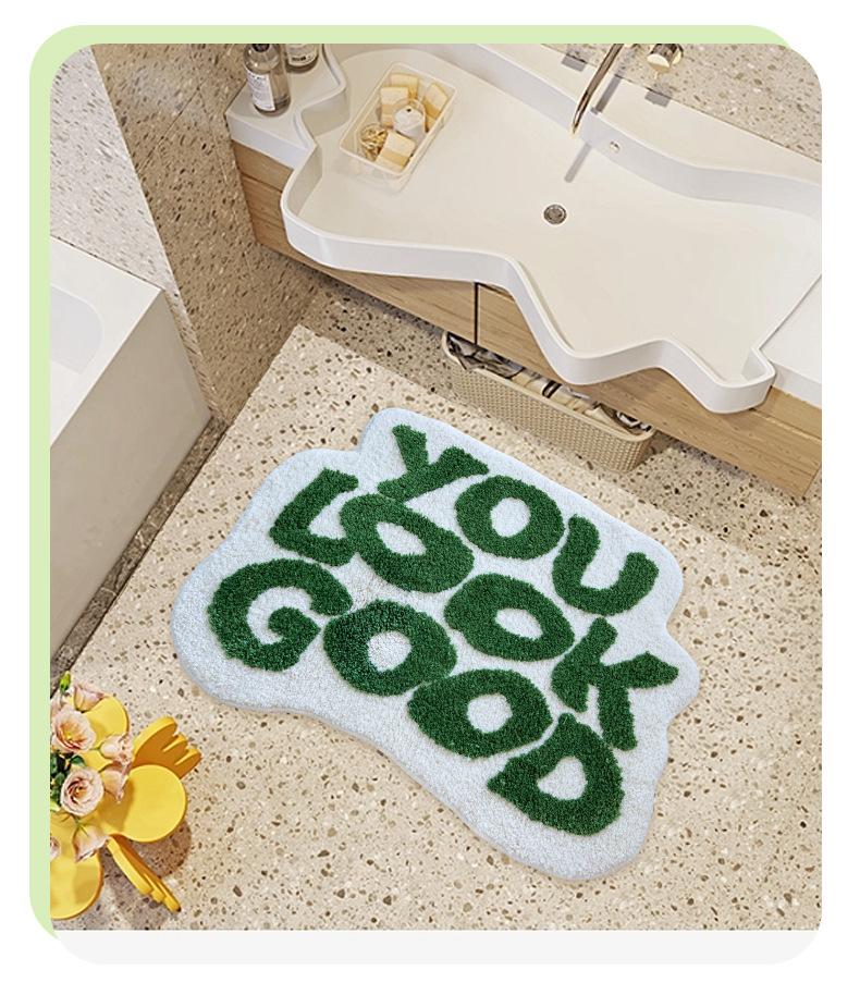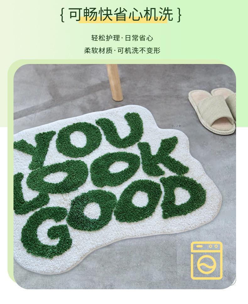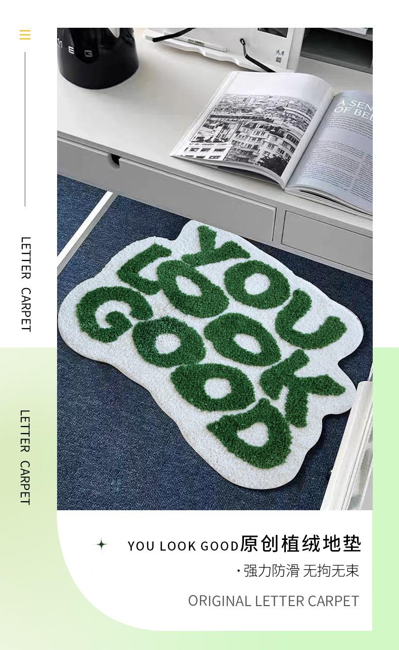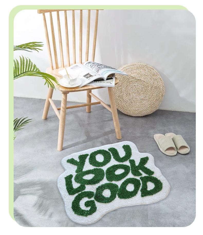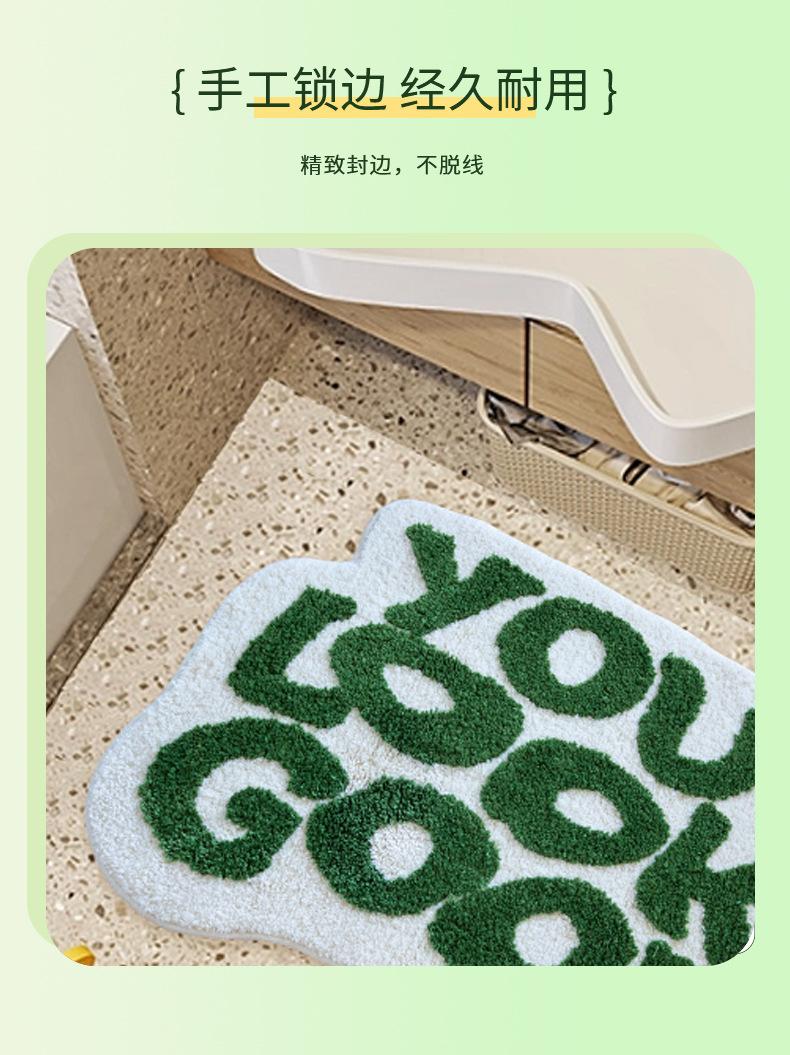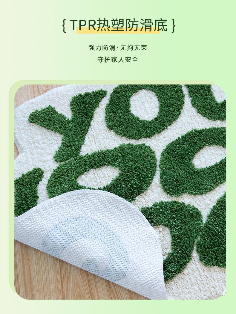 Alfombra absorbente y antideslizante con diseño de letras, ideal para decorar el hogar, la cama, el dormitorio y la habitación verde.