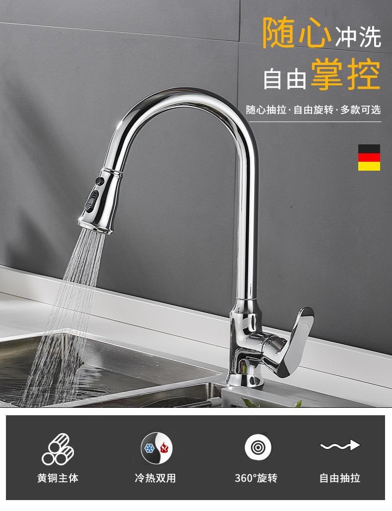 Grifo giratorio extensible de cobre para fregadero de cocina, lavabo para verduras, caliente y frío