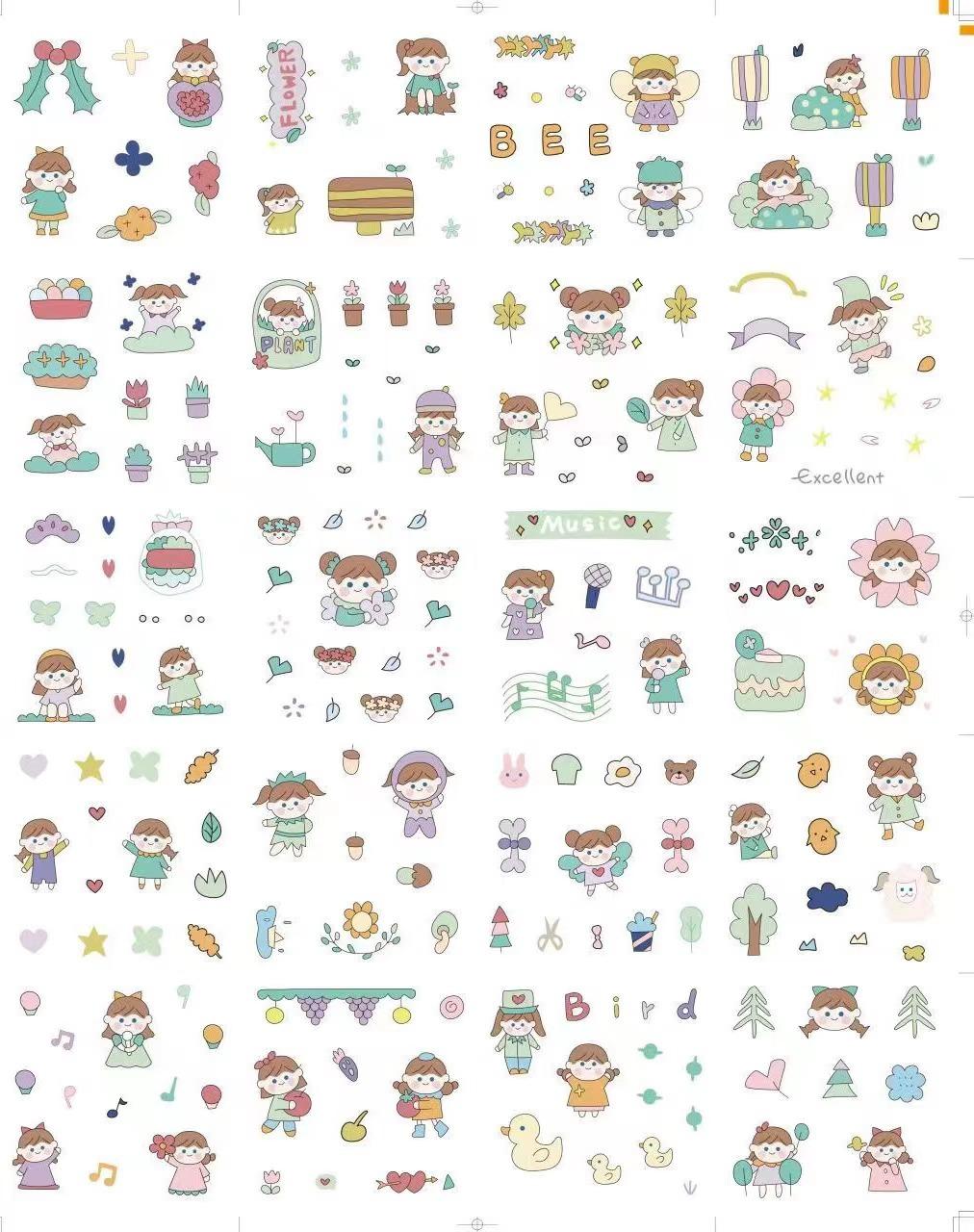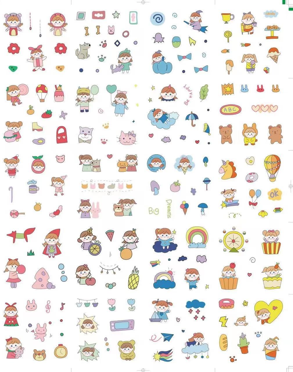 Compra 100 pegatinas de cuenta de mano de mascota de dibujos animados lindos, material de cuenta de mano de niña coreana, pegatinas de tarjeta goo de taza para niños al por mayor en Joom.pro