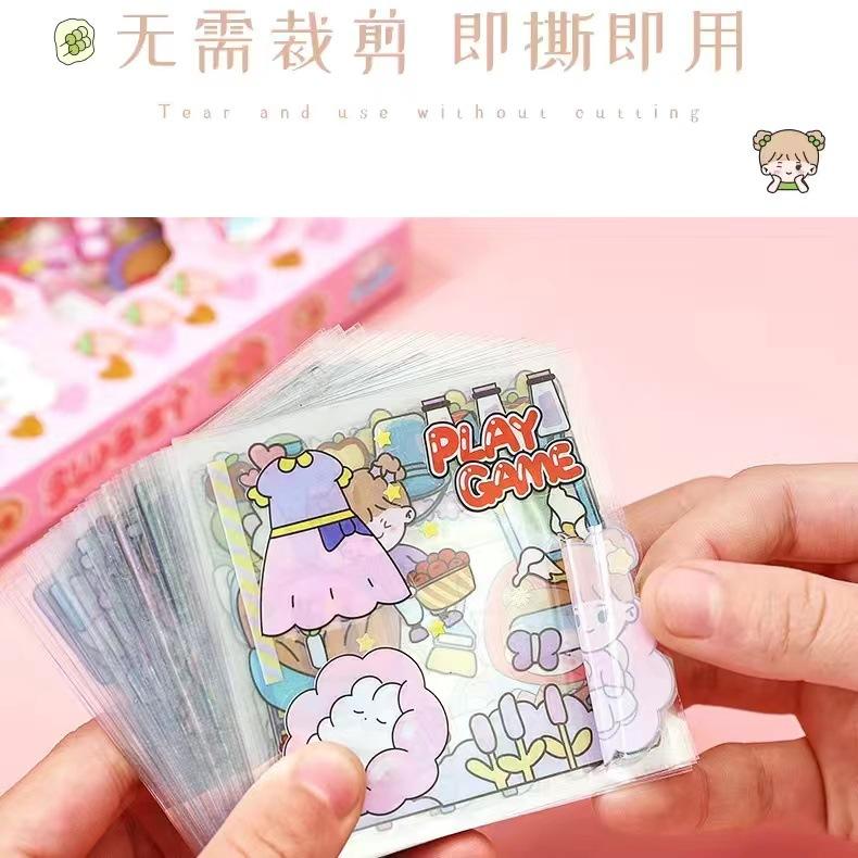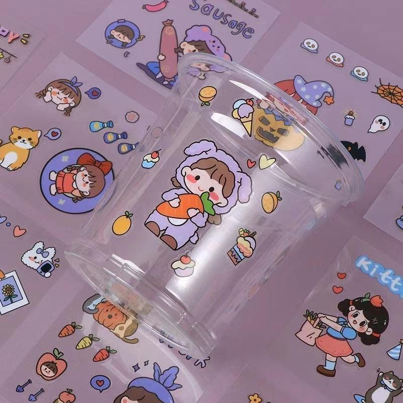100 pegatinas de cuenta de mano de mascota de dibujos animados lindos, material de cuenta de mano de niña coreana, pegatinas de tarjeta goo de taza para niños