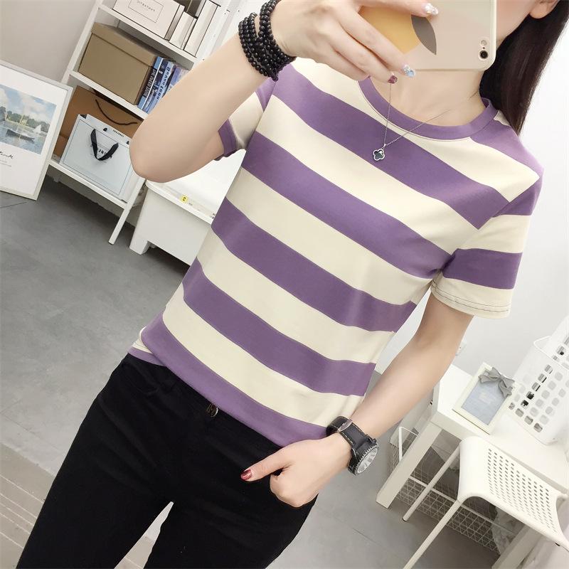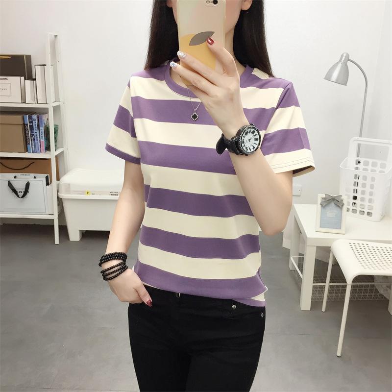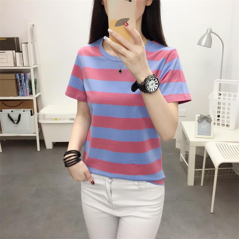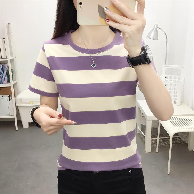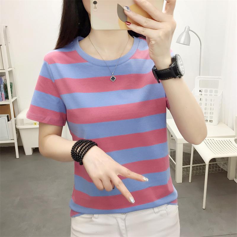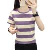 2024 Nuevo talla grande Suelto Adelgazante Algodón Camiseta de manga corta para mujer Verano Manga media Camiseta Top a rayas Ropa