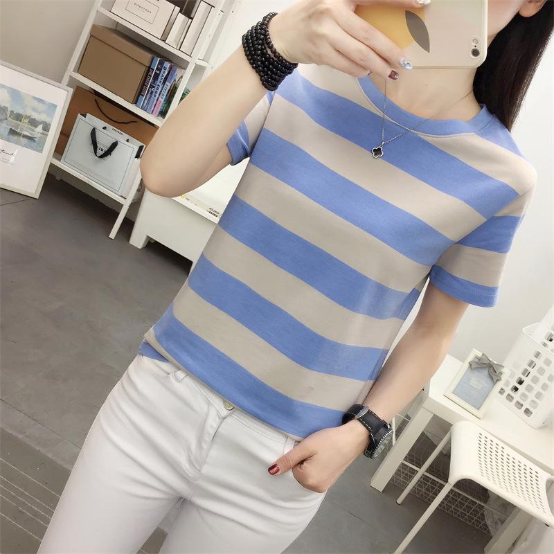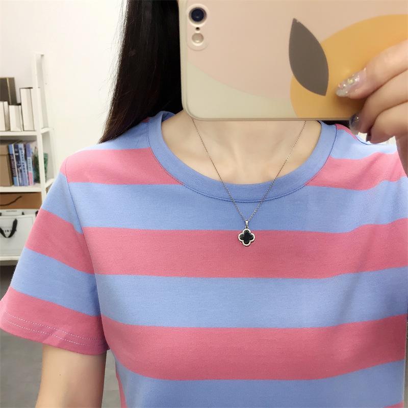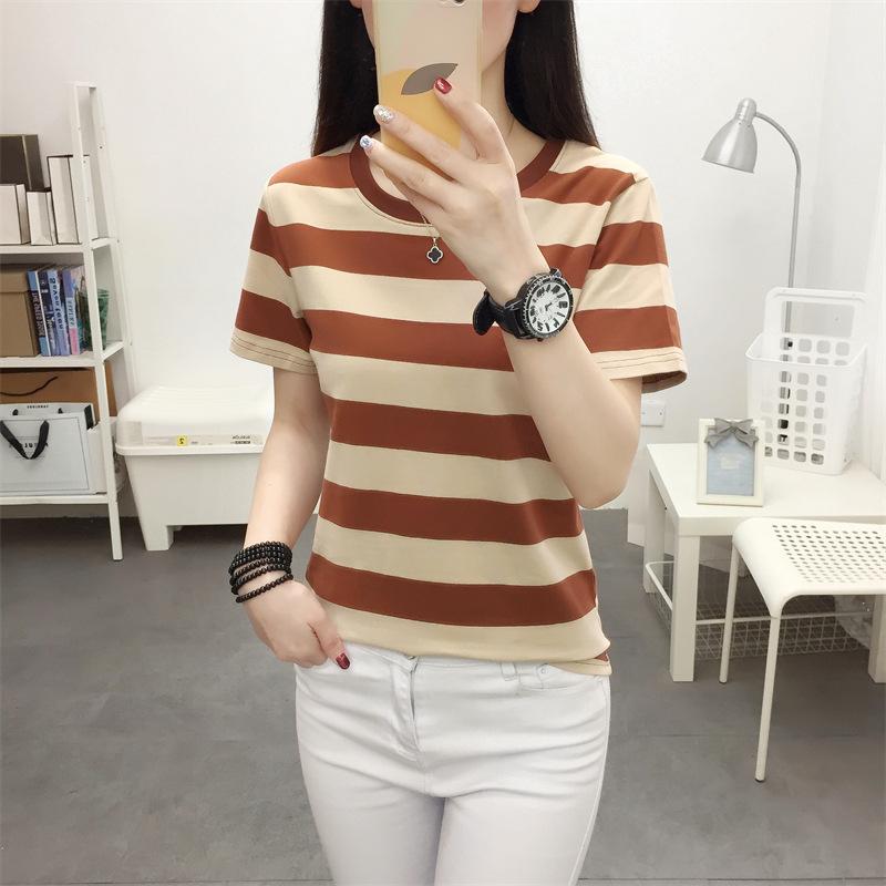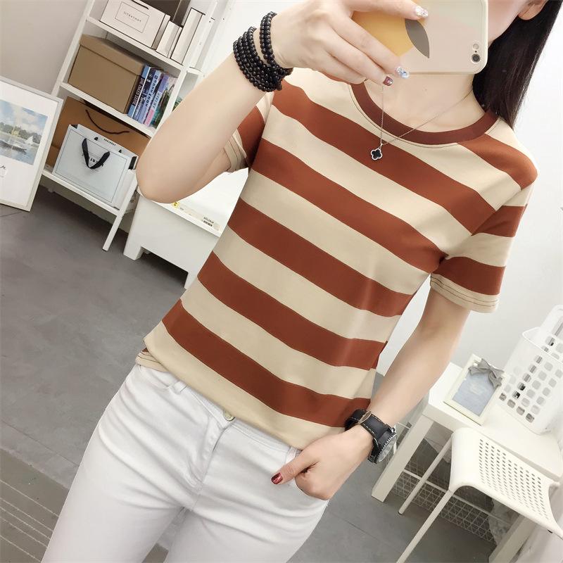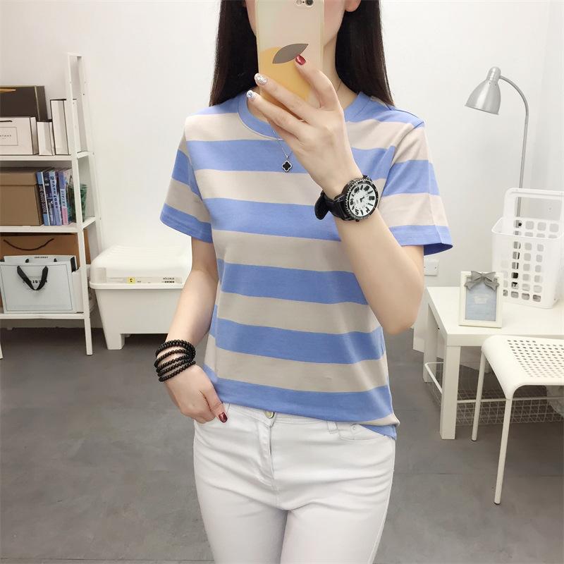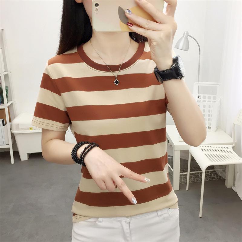 2024 Nuevo talla grande Suelto Adelgazante Algodón Camiseta de manga corta para mujer Verano Manga media Camiseta Top a rayas Ropa