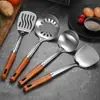 Espátula de acero inoxidable de grado alimenticio 304, espátula creativa multifuncional para freír, mango de madera maciza, espátula para cocinar.