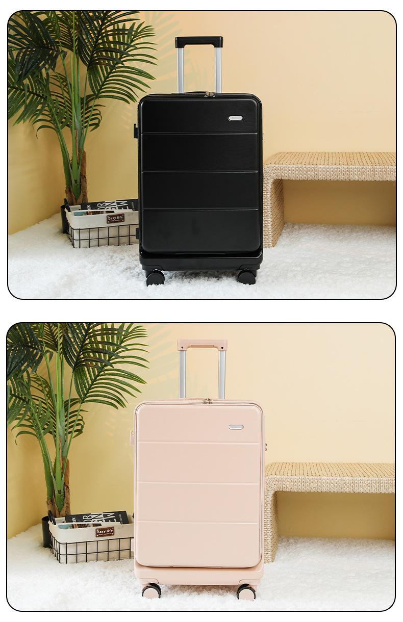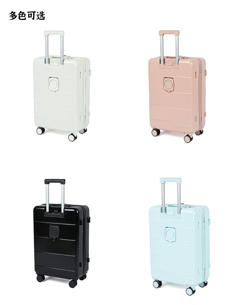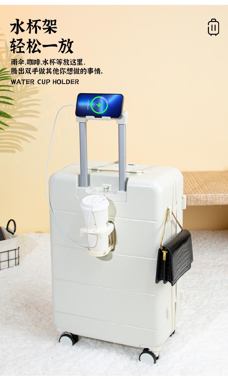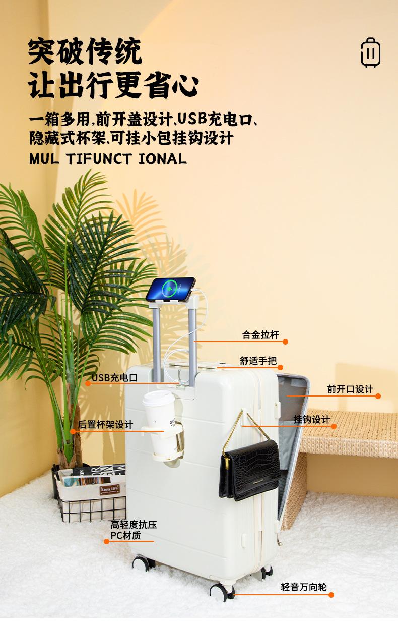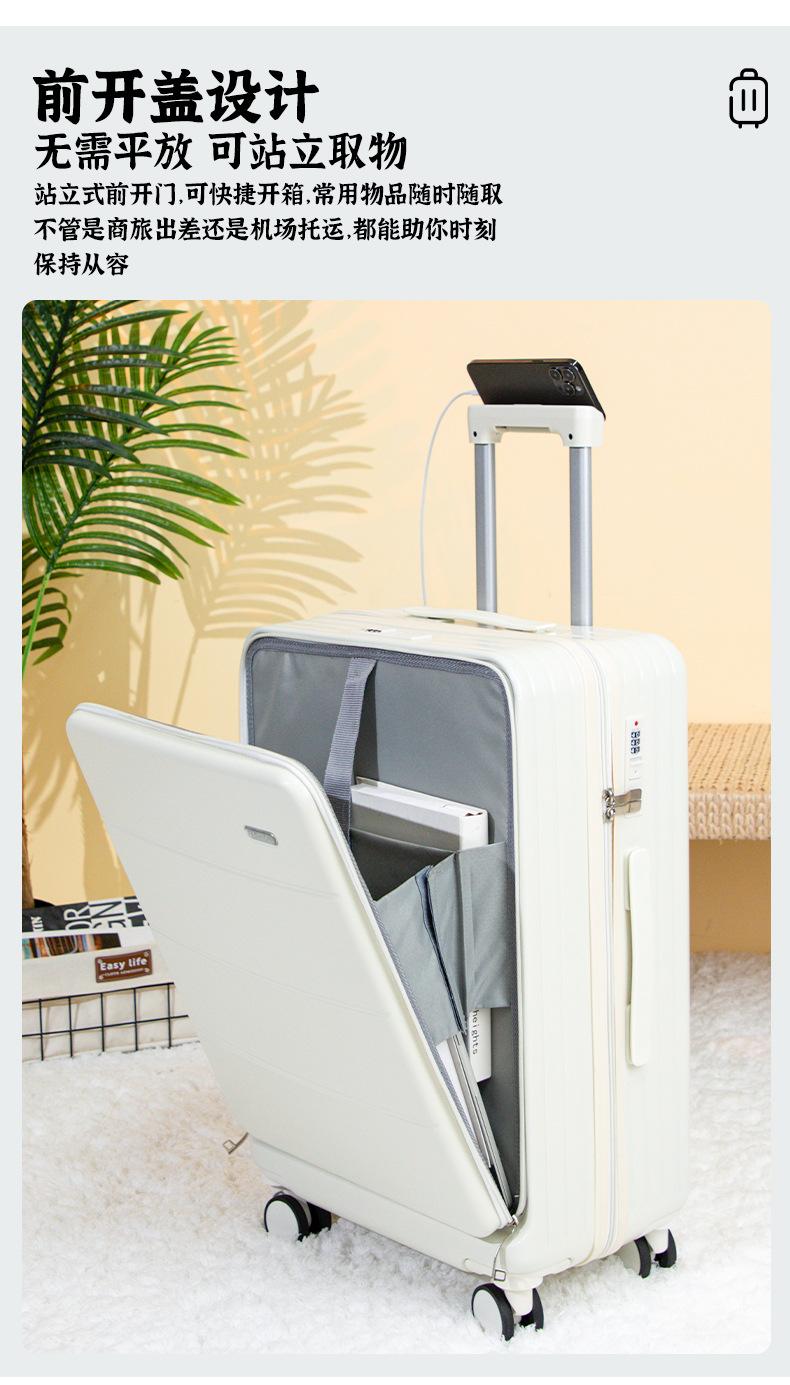Equipaje de apertura frontal con función completa de 20 pulgadas portavasos con interfaz USB maleta trolley con rueda universal 26 caja de viaje con contraseña