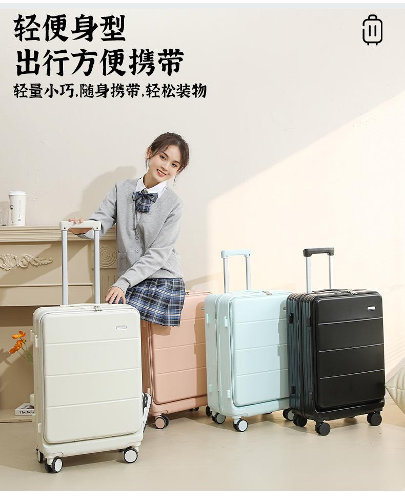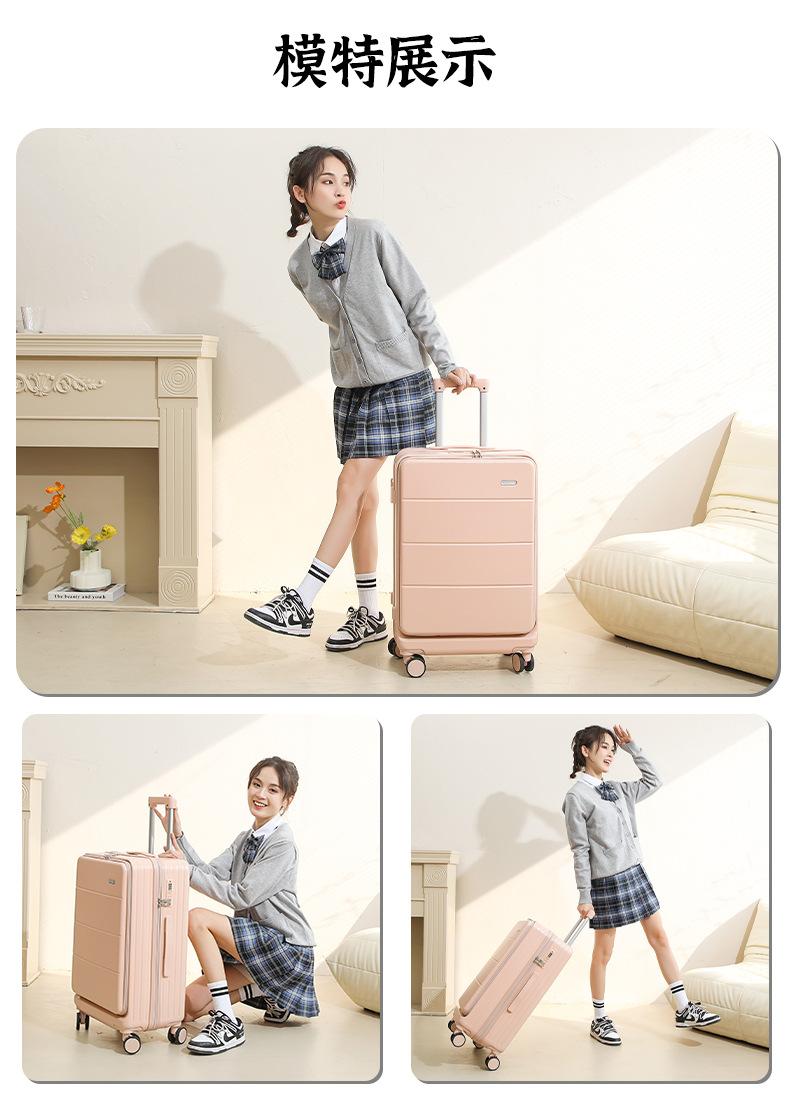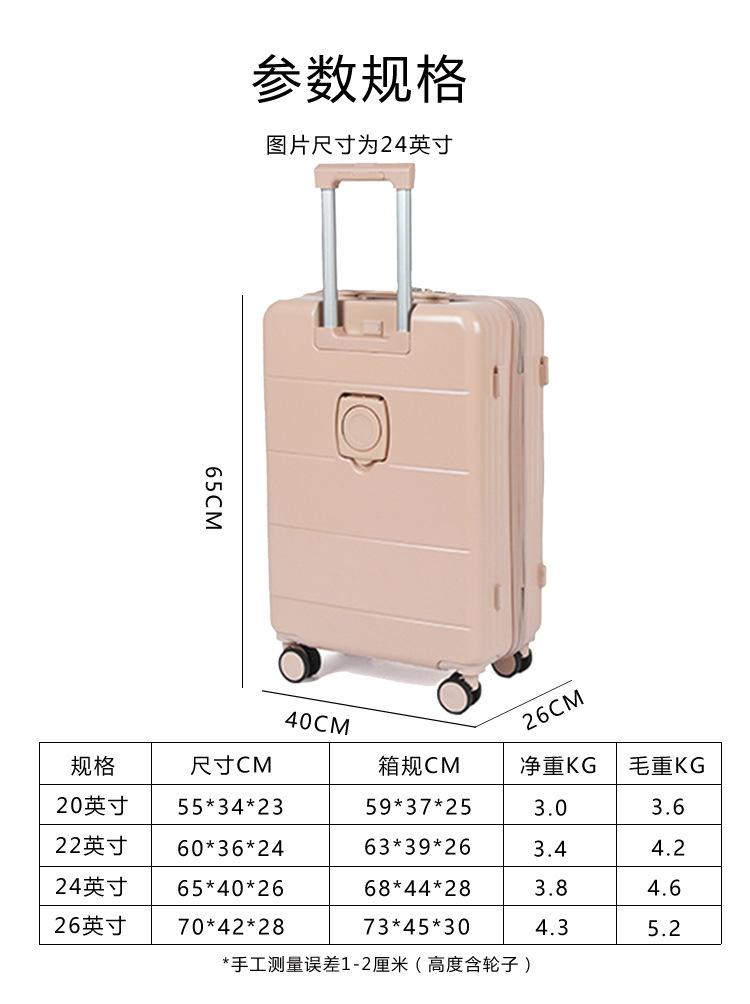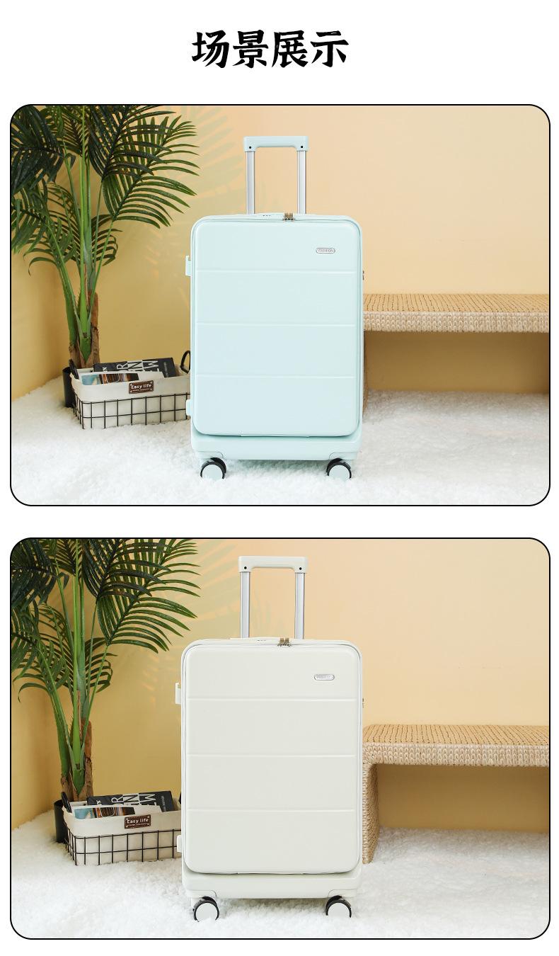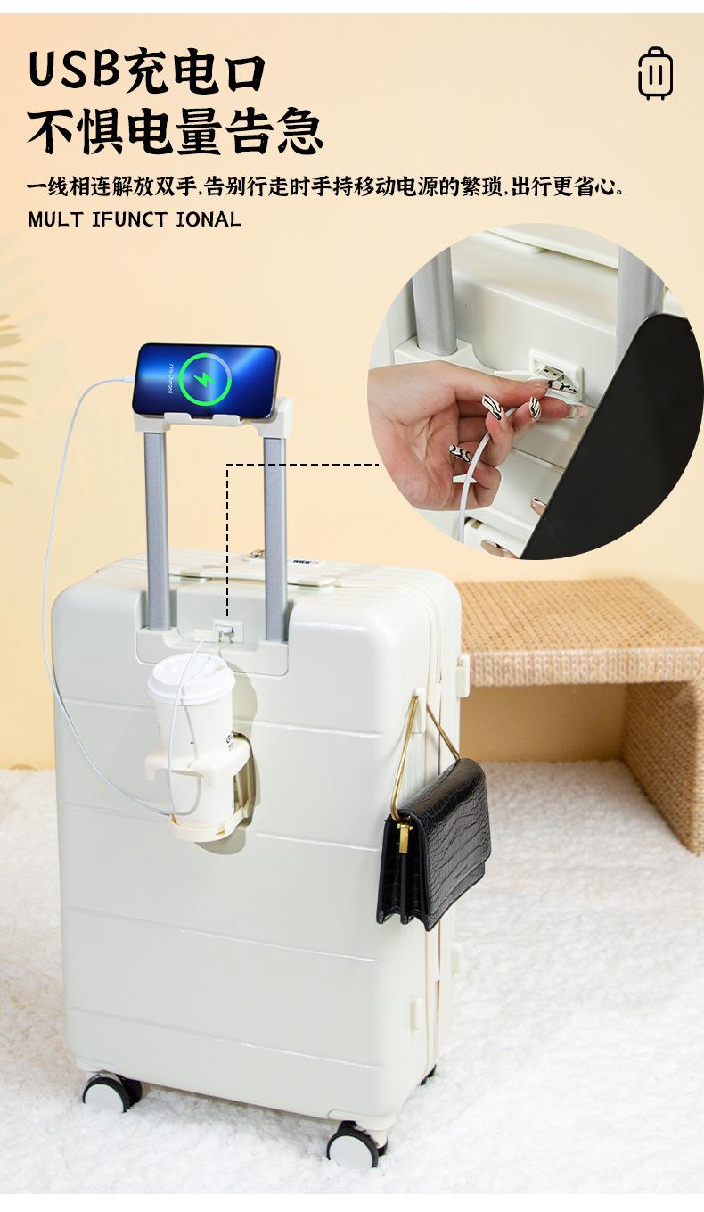Equipaje de apertura frontal con función completa de 20 pulgadas portavasos con interfaz USB maleta trolley con rueda universal 26 caja de viaje con contraseña