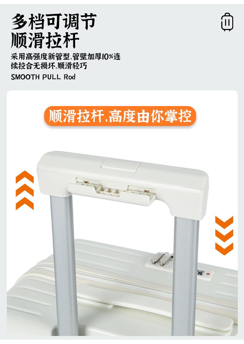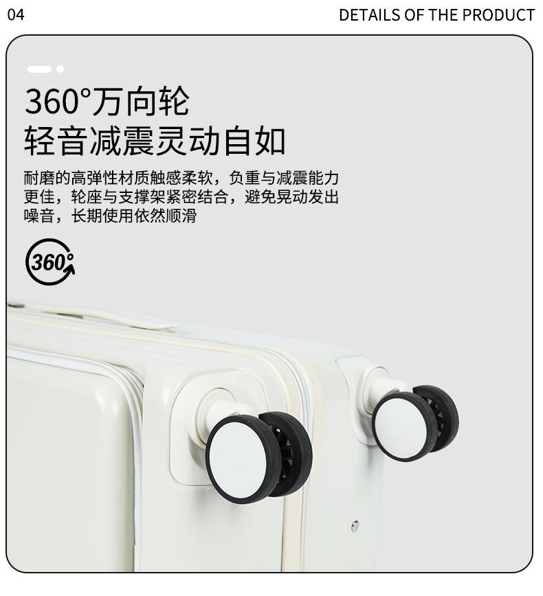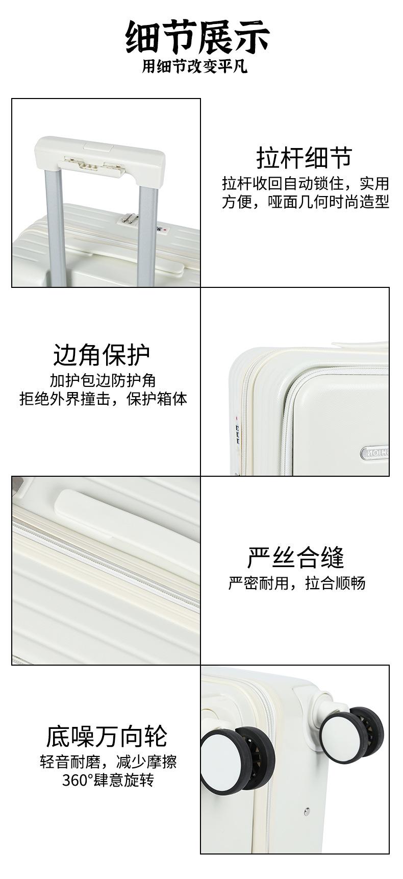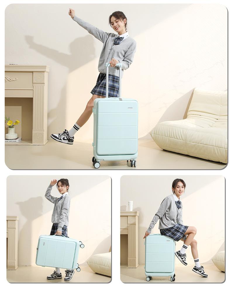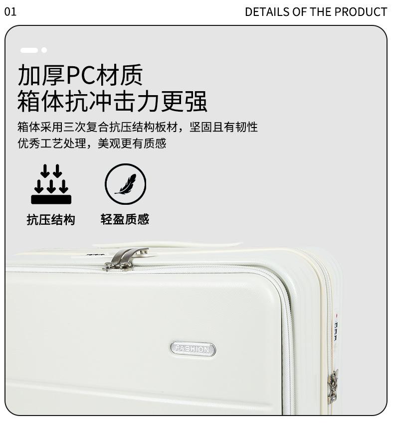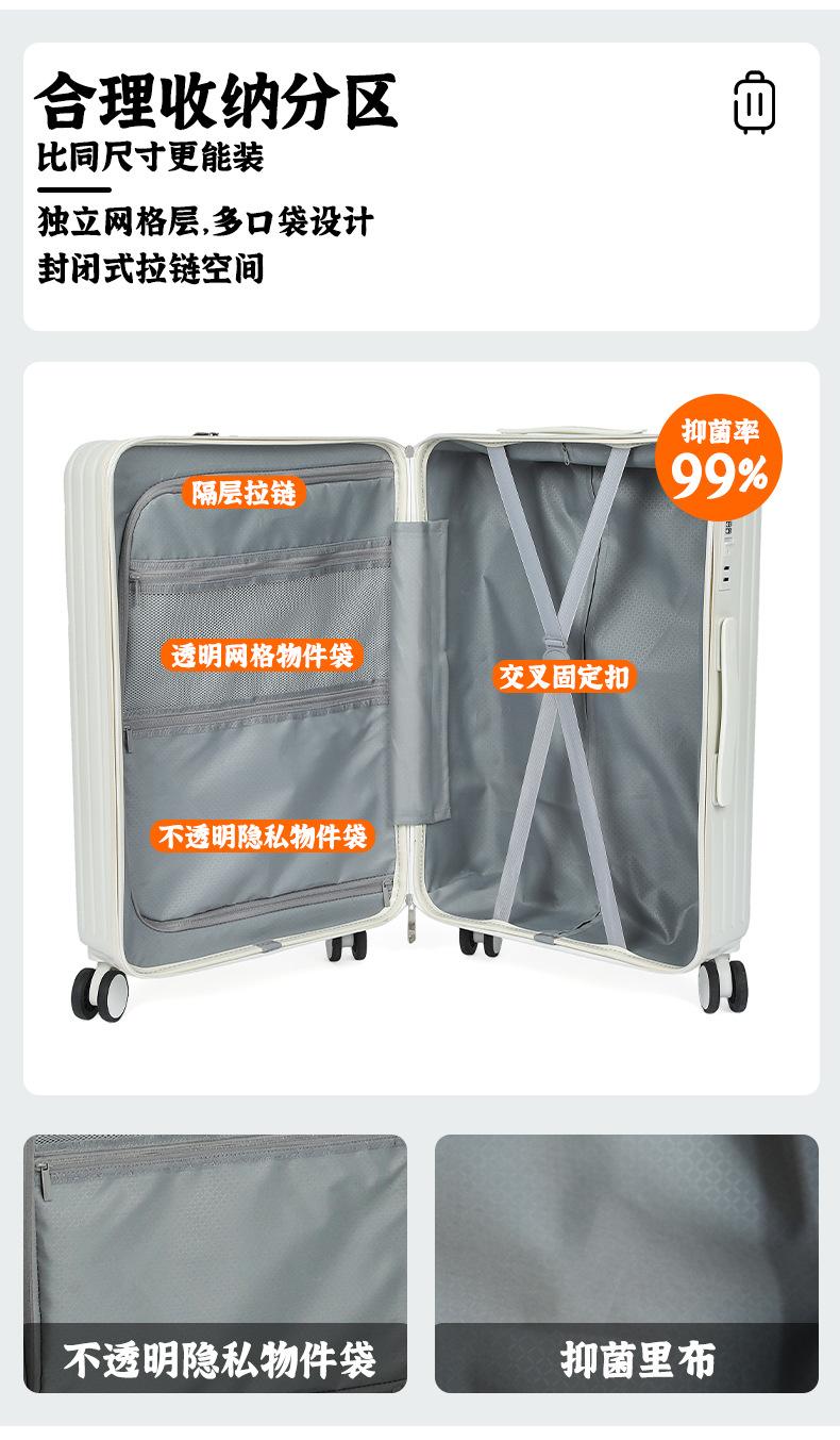 Equipaje de apertura frontal con función completa de 20 pulgadas portavasos con interfaz USB maleta trolley con rueda universal 26 caja de viaje con contraseña