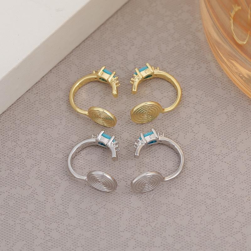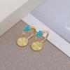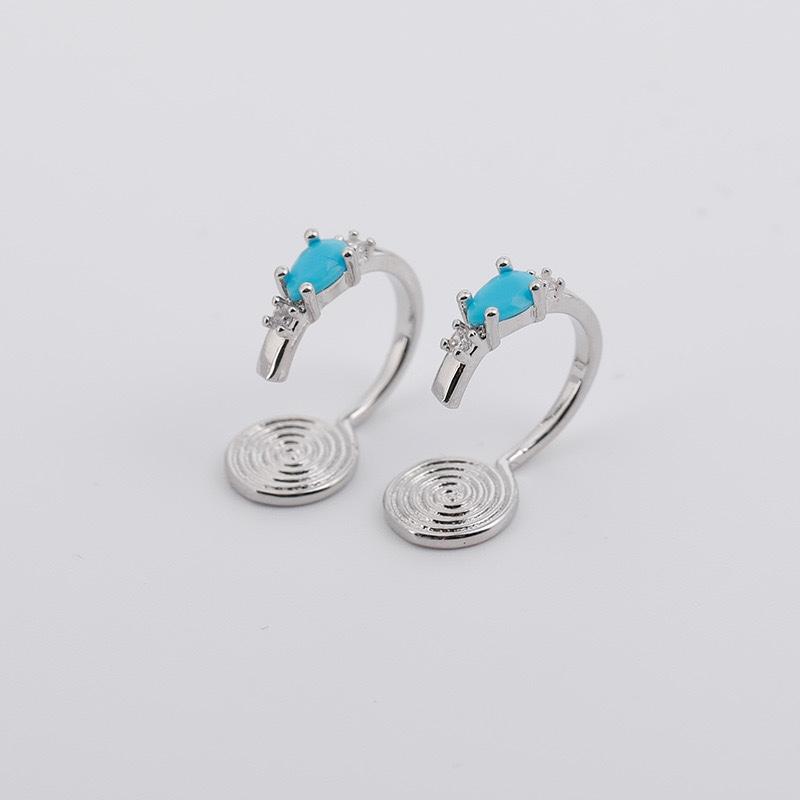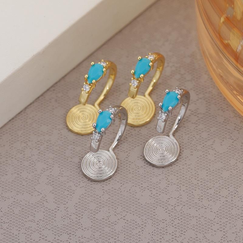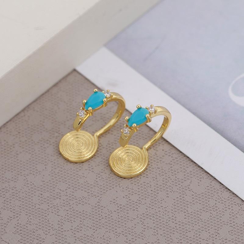 Clip para oreja de una pieza con circonita turquesa en forma de gota de agua azul, diseño de plato para incienso de mosquito, aretes de temperamento de estilo pequeño y simple al por mayor