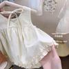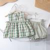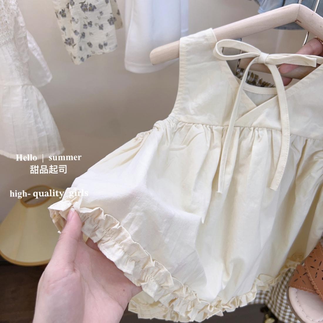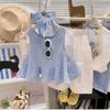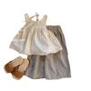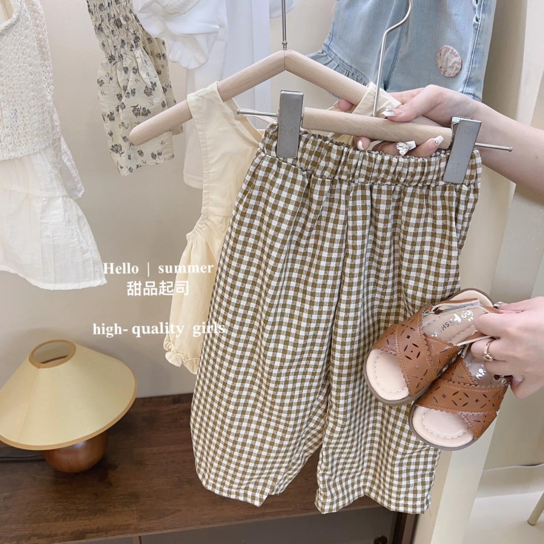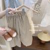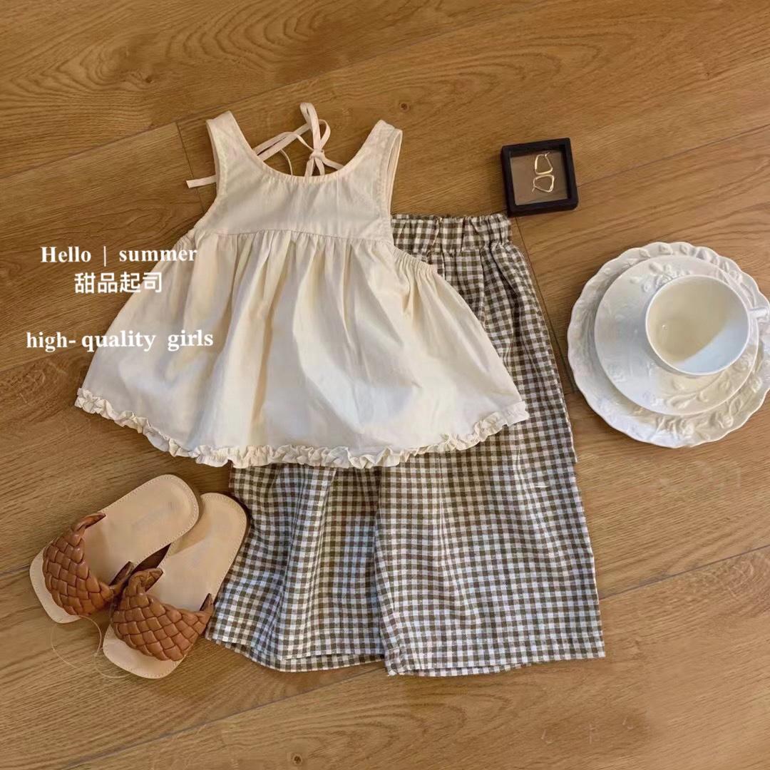 Traje de verano para niñas, elegante, con personalidad para niños, estilo coreano moderno, chaleco con orejas, camisa de muñeca, pantalones anchos a cuadros