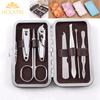 Juego de herramientas de belleza, cortaúñas de alta calidad, alicates planos, lima, cuchara para excavar orejas, pinza para cejas, tijeras recortadoras de cejas, juego de 7 piezas, tapa dura
