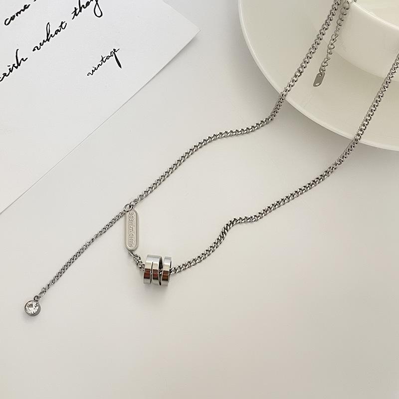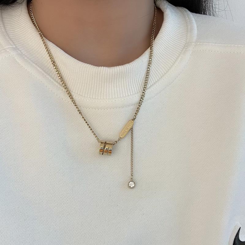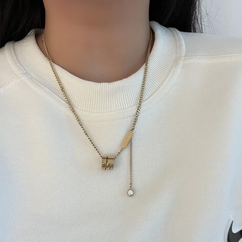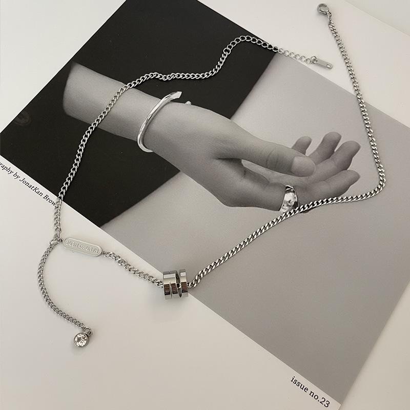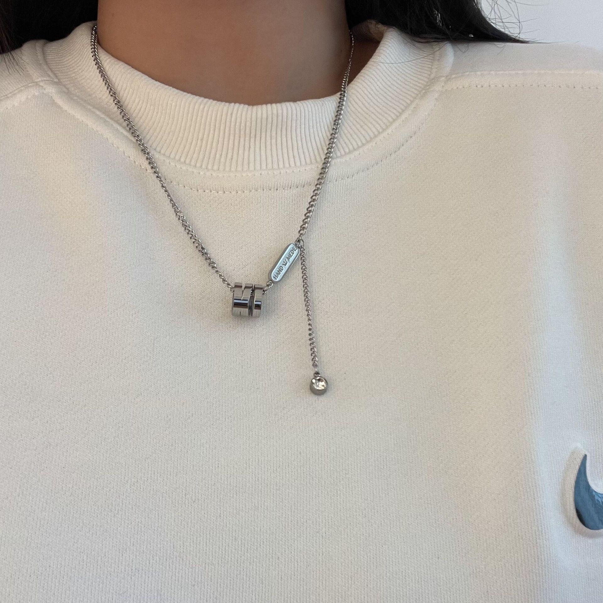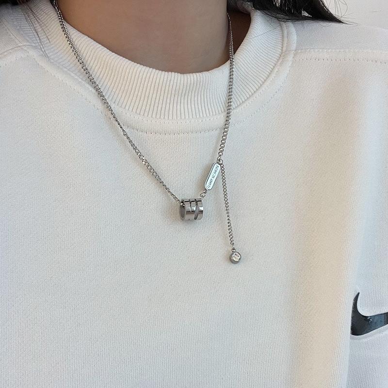 Collar cilíndrico pequeño y largo de acero de titanio de marca de moda estilo hip hop, cadena de suéter de marca de moda, dulce, genial, combinable con todo, cadena de clavícula simple.