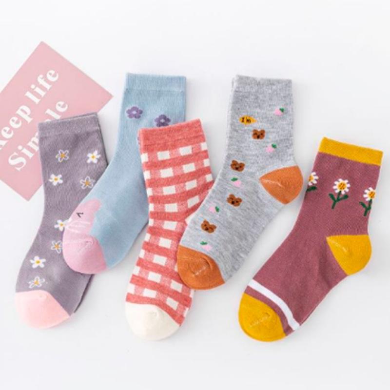 Calcetines nuevos para niños, calcetines de algodón de color INS para otoño e invierno, calcetines de tubo de dibujos animados, calcetines de estilo académico para niños y niñas, venta al por mayor