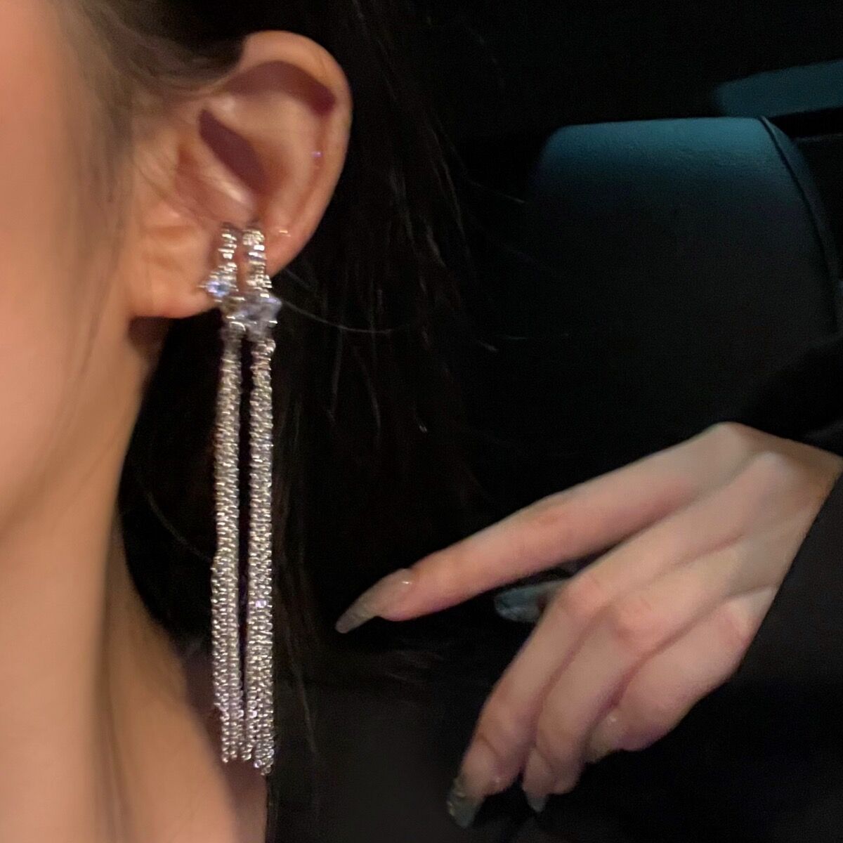 Pendientes de clip para orejas sin agujeros para mujer, con borlas, largos, colgantes, ligeros, de lujo, con diseño de nicho, elegantes y avanzados.