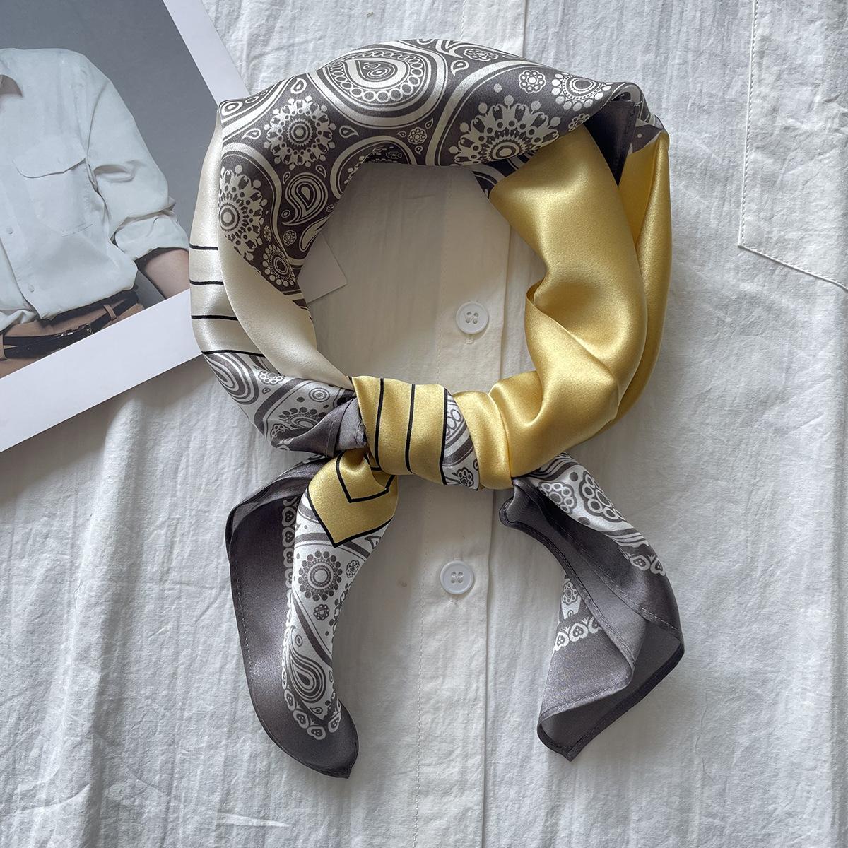 Bufanda de seda amarilla y gris para mujer, pequeña bufanda cuadrada, combinable, 100% seda morera, para primavera y otoño, nueva camisa para traje.