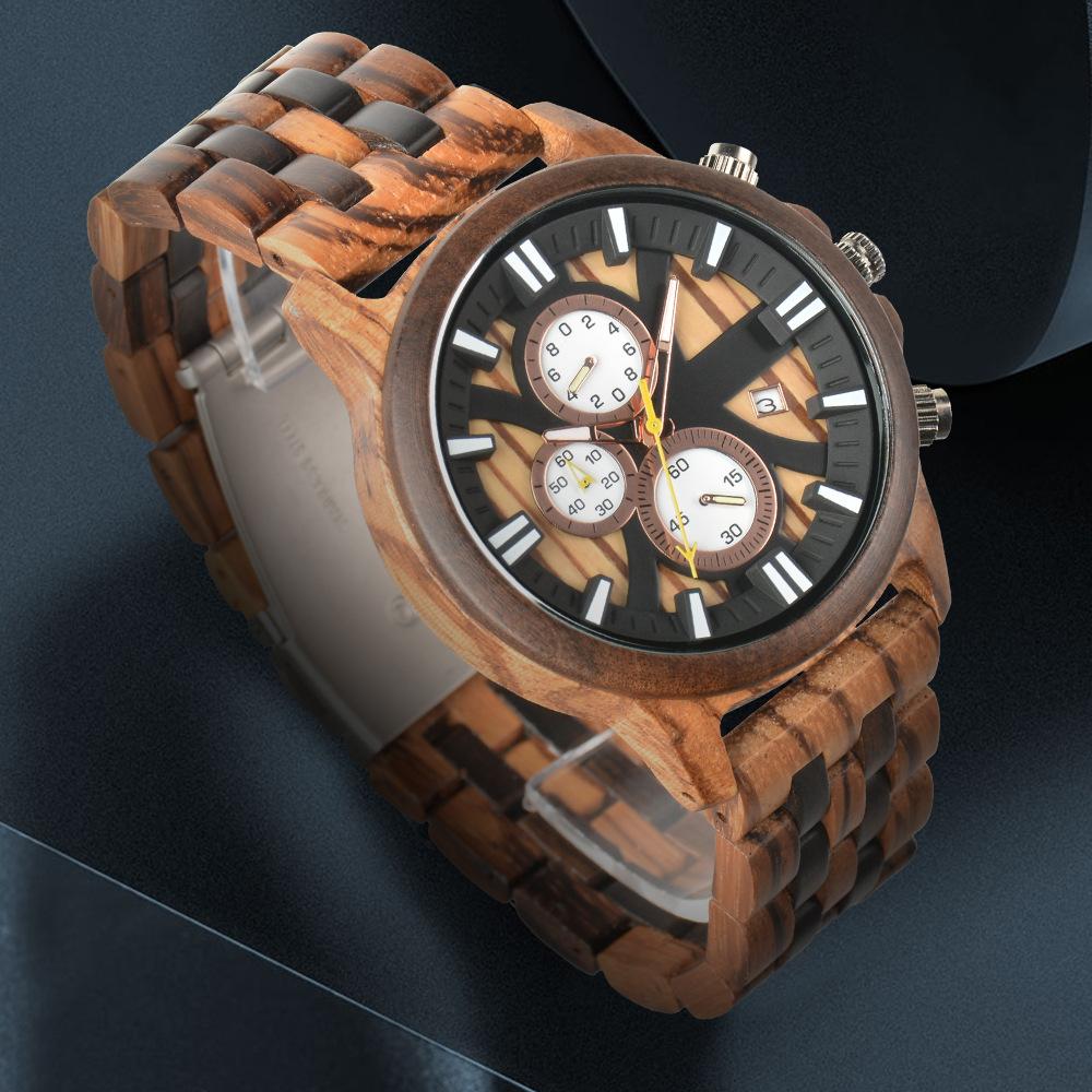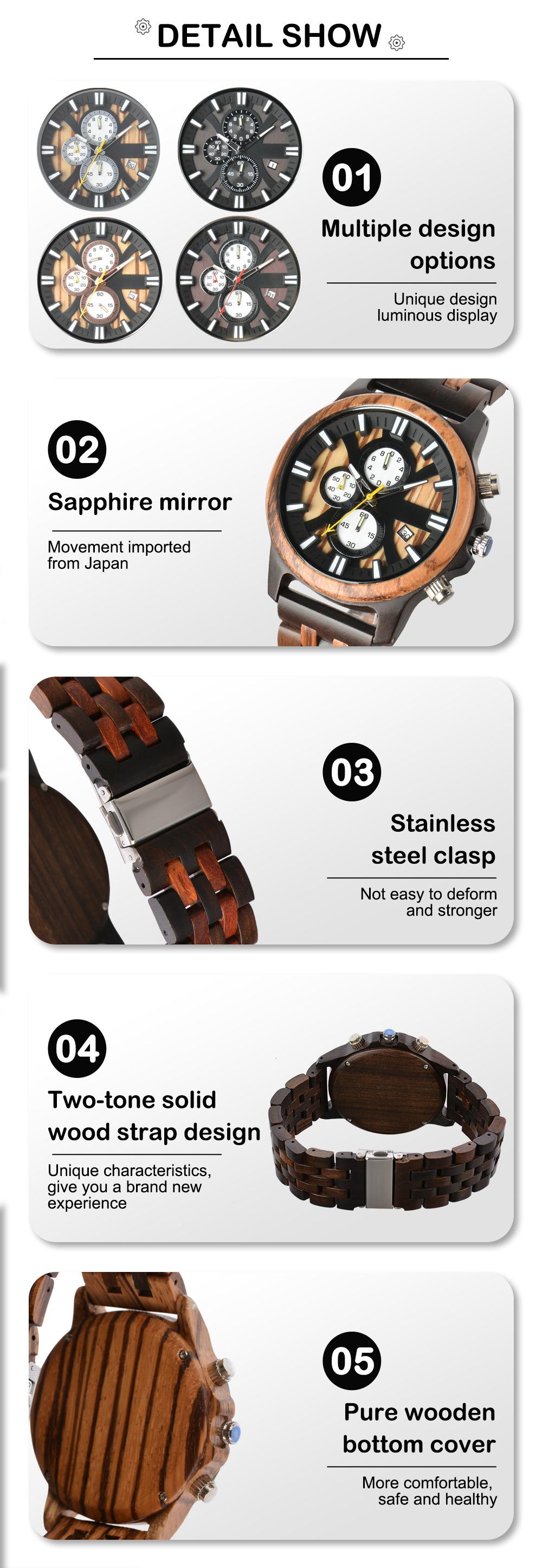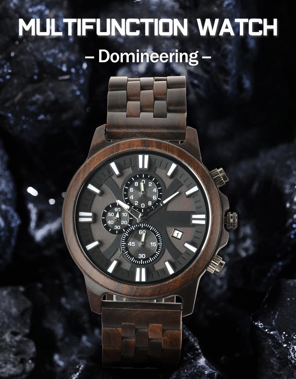 Relojes de madera para hombre, relojes de madera multifunción de moda, relojes de cuarzo de sándalo de comercio electrónico transfronterizo, venta al por mayor de fábrica