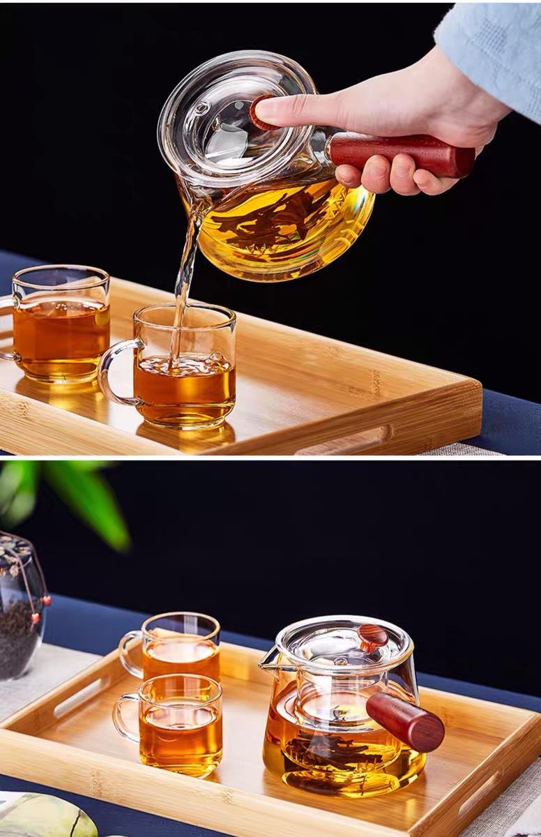 Tetera de vidrio con asa lateral, tetera resistente a altas temperaturas, tetera eléctrica de cerámica, tetera doméstica, tetera con mango de madera