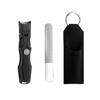 [large opening] black large size - comes with locking nail clippers + glass nail file + leather case + pearlescent bag