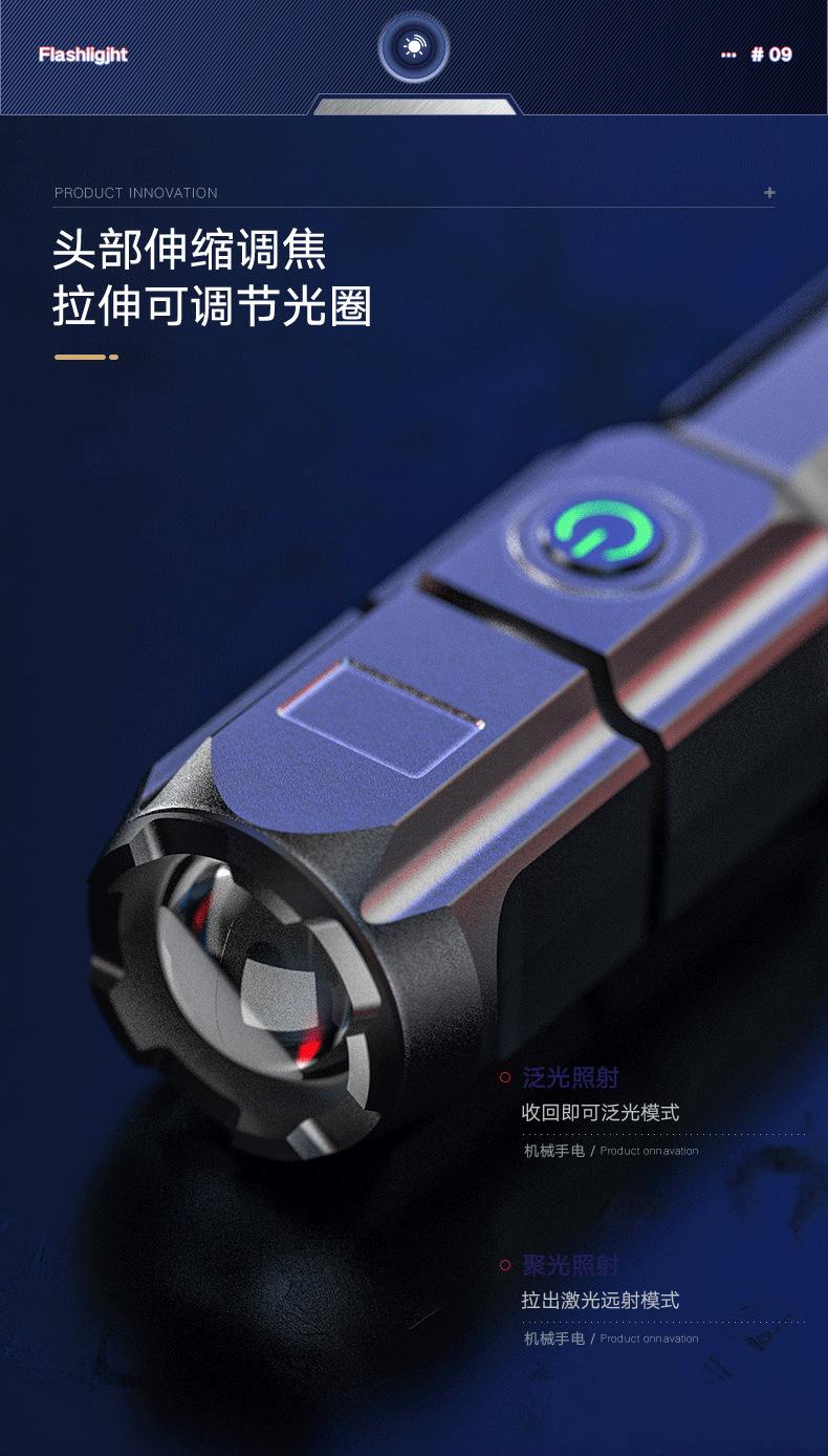 Linterna multifunción transfronteriza de carga con zoom telescópico superbrillante mini portátil para camping, hogar, iluminación
