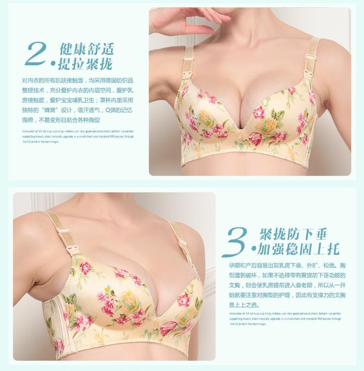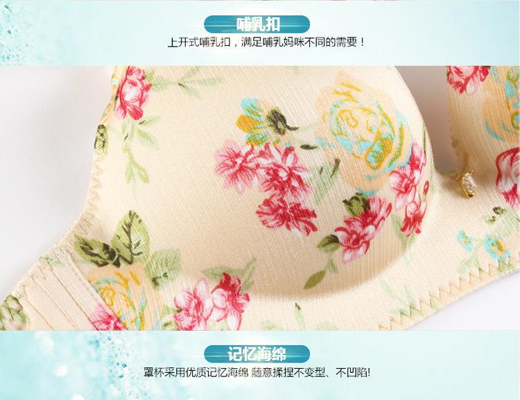 Sujetador de Lactancia Flor Rosa Antideslizante Ligero con Punto de Masaje Tirante Ancho de Una Pieza Ropa Interior para Mujeres Embarazadas Sin Aro de Acero Súper Erguido Algodón