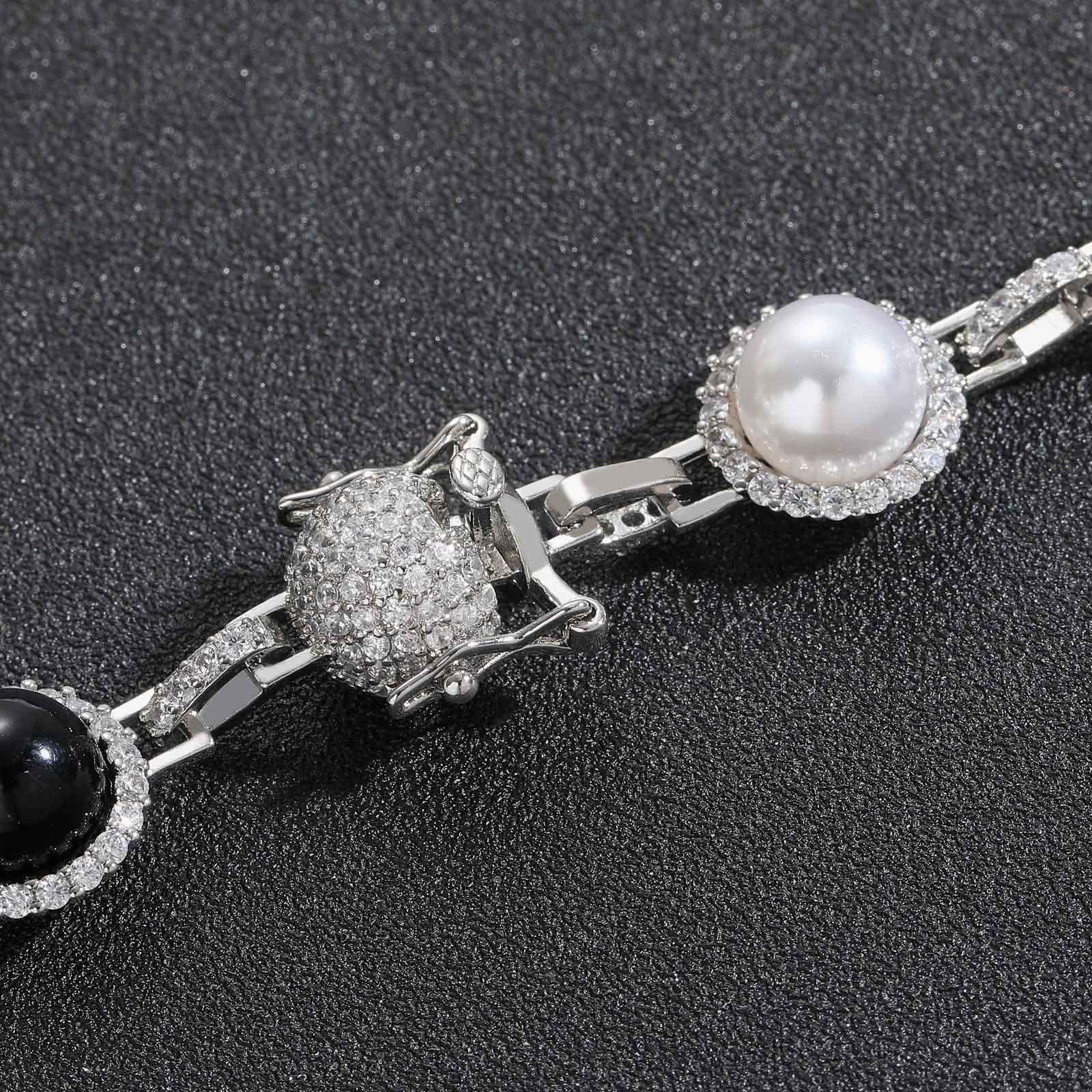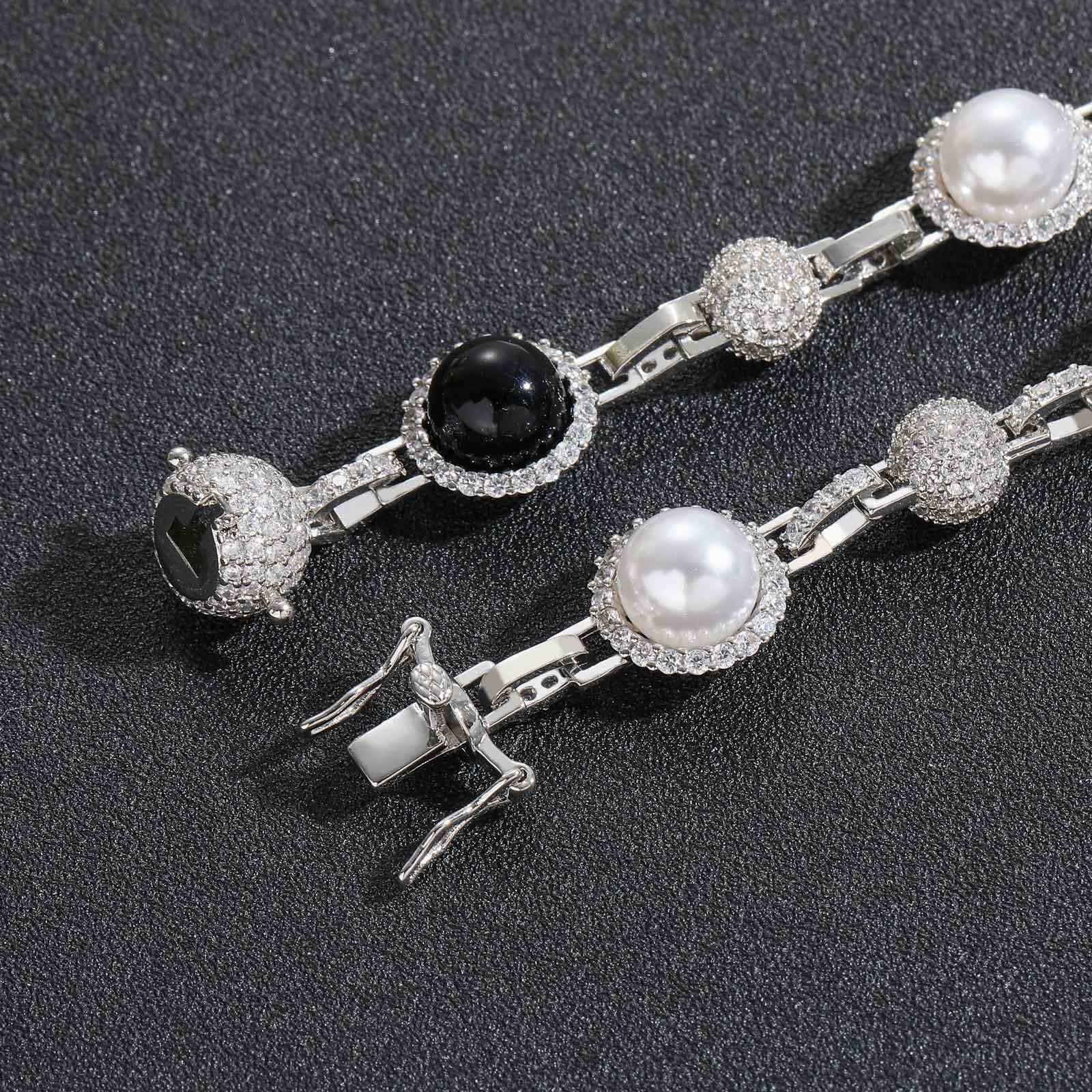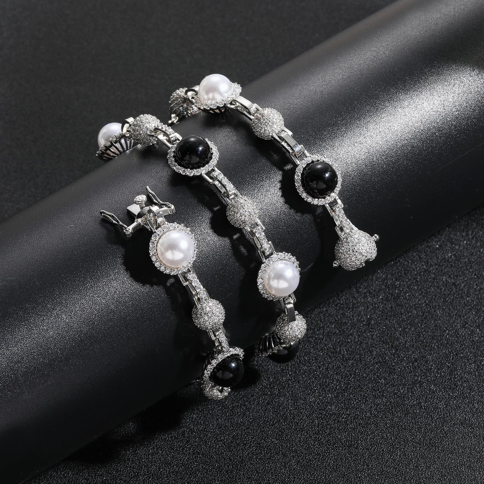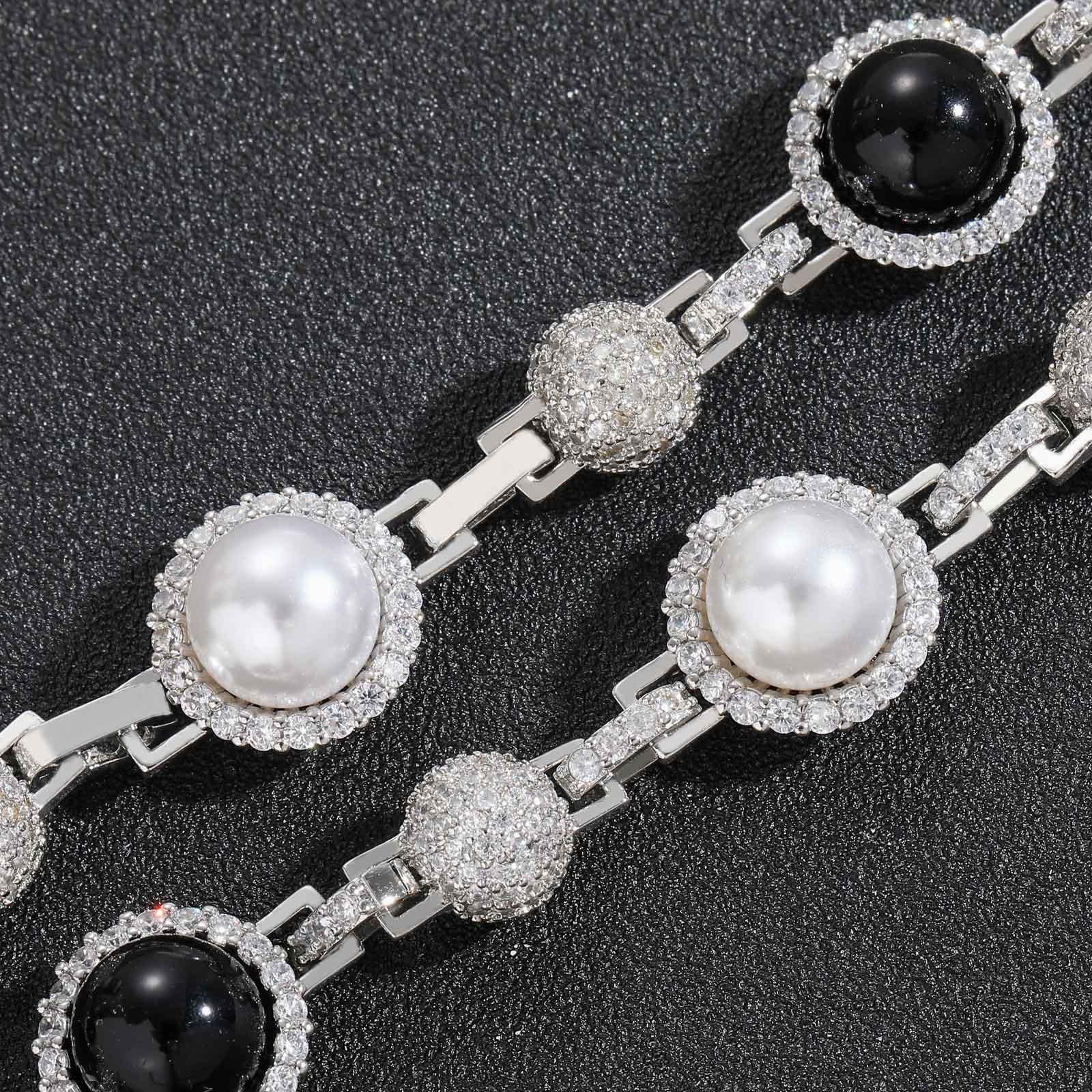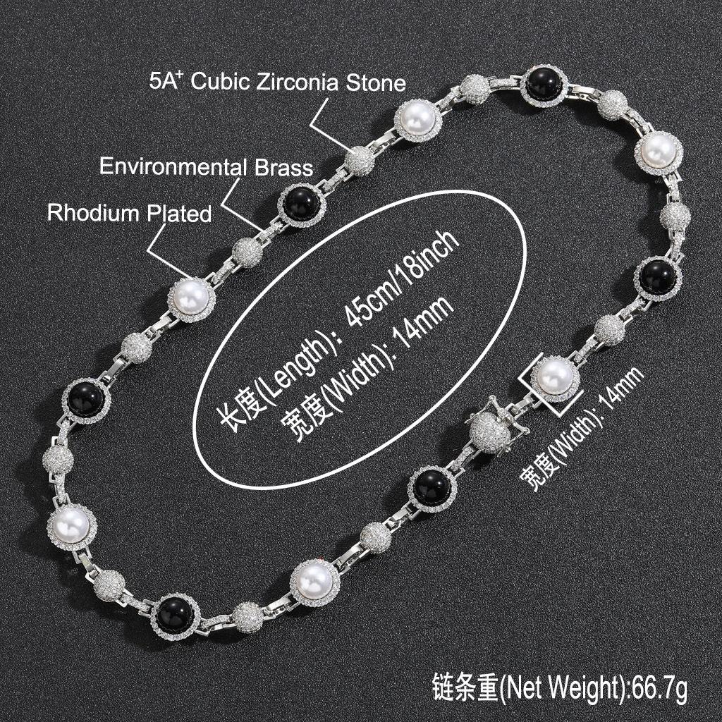 Nuevo collar de perlas blancas y negras con microincrustaciones de circonitas estilo hip hop europeo y americano para hombre, accesorios de cadena retro personalizados y modernos.