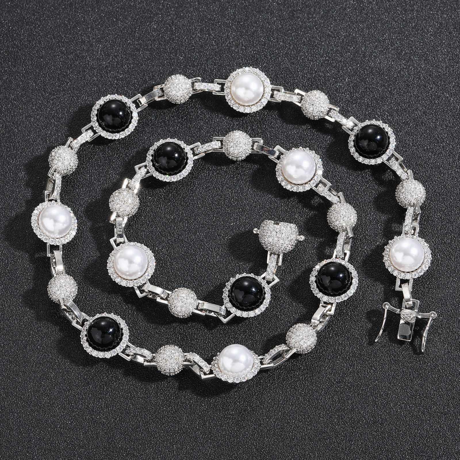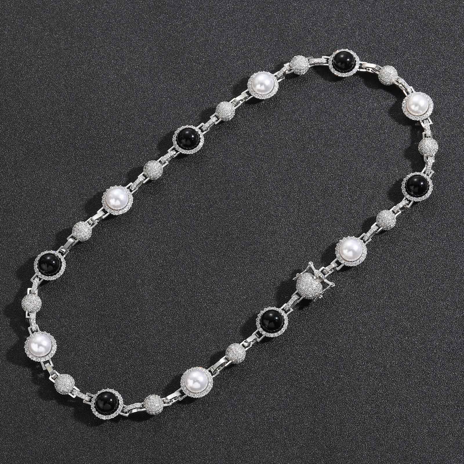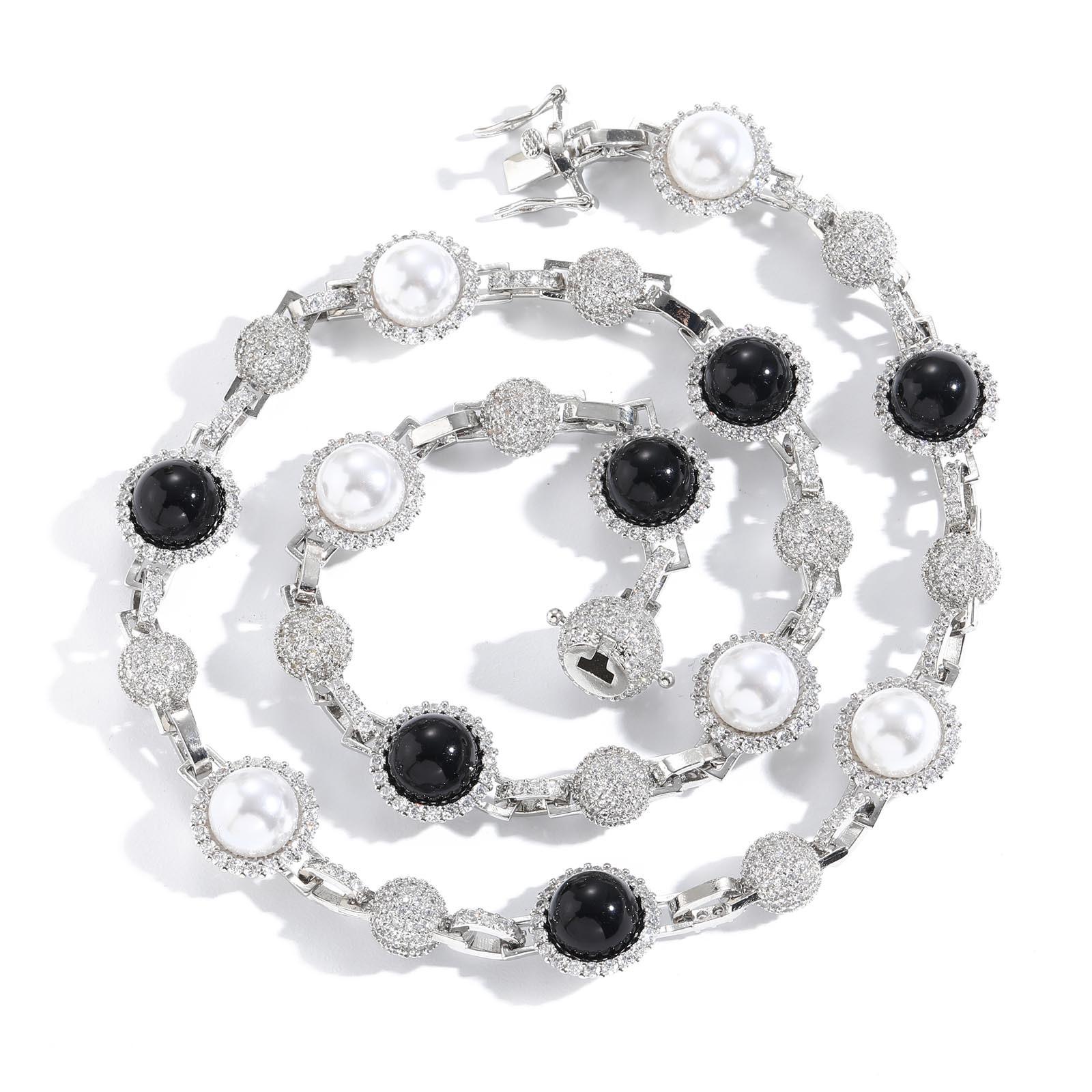 Artículo/Nombre del producto: Collar de perlas blancas y negras de estilo hip hop