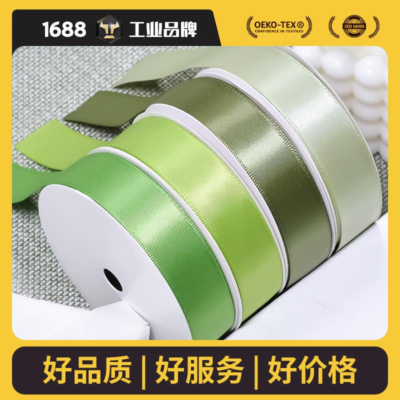 | Cinta de cifrado de doble cara al por mayor, cinta de satén de poliéster verde claro, decoración de ropa, caja de pastel, cinta de embalaje de flores |