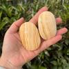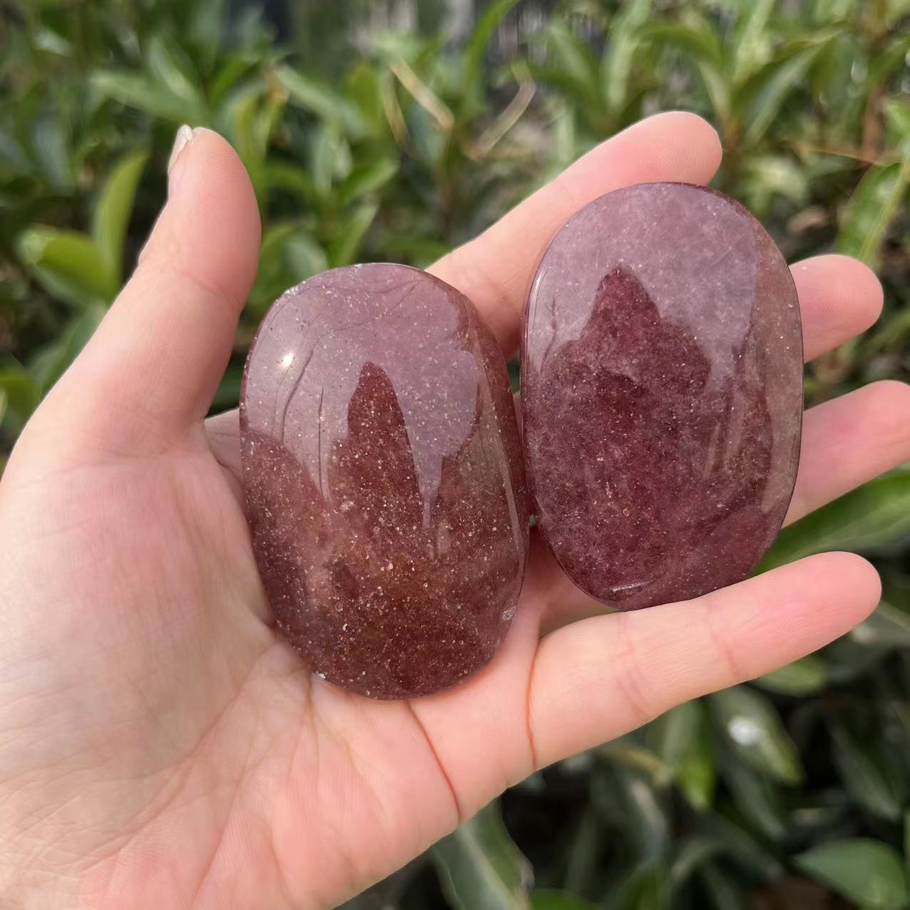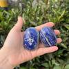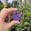 Piedra bruta de cristal natural pulida y jugada con pieza de mango de amatista ovalada descompresión palma piedra energética yoga piedra de masaje