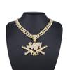 Collar de cadena de clavícula con metralleta de hip hop europeo y americano, colgante transfronterizo, joyería ajustable con diamantes completos para hombres y mujeres, pareja con diamantes completos
