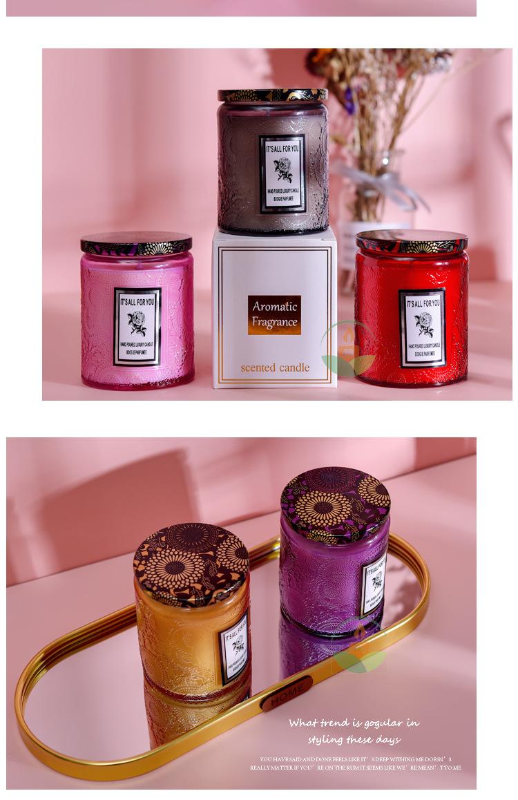 Vela perfumada de regalo de mano con vaso de vidrio en relieve grande transfronterizo al por mayor, adornos de vela con fragancia creativa sin humo personalizados
