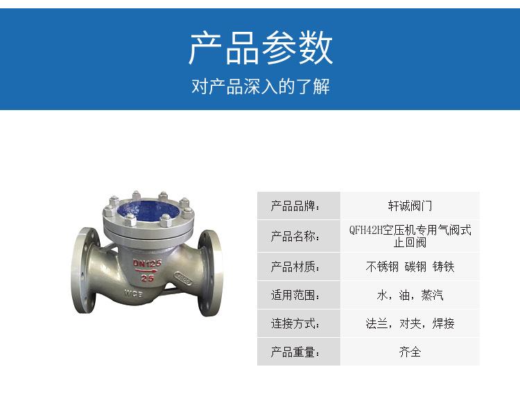 Válvula de retención tipo válvula especial para compresor de aire QFH42H
