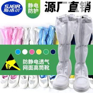 ![]() Botas altas antiestáticas de PVC azul y blanco libres de polvo, antiestáticas, transpirables, botas altas de malla a rayas antiestáticas