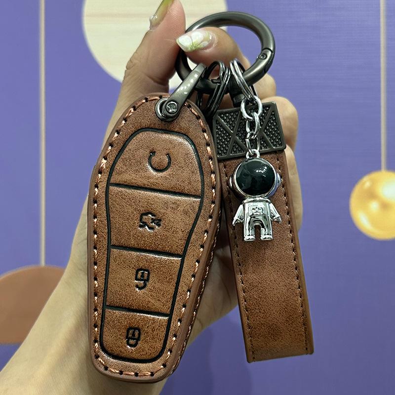 BYD D D [Brown] leather case + lanyard + metal silver astronaut