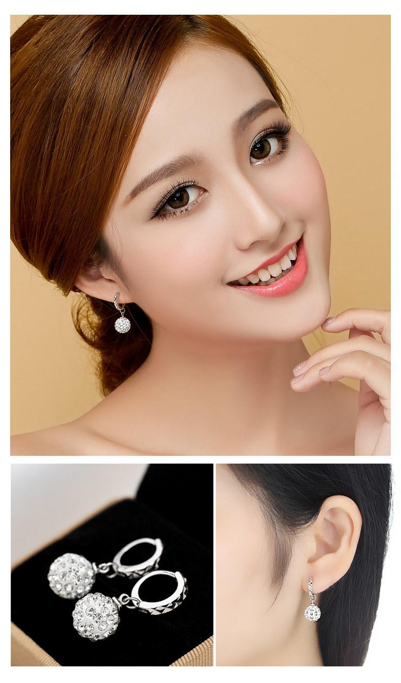 Pendientes Zhen Rong de imitación de plata Shambhala con diamantes de imitación, pendientes de bola de princesa, pendientes femeninos, fábrica al por mayor