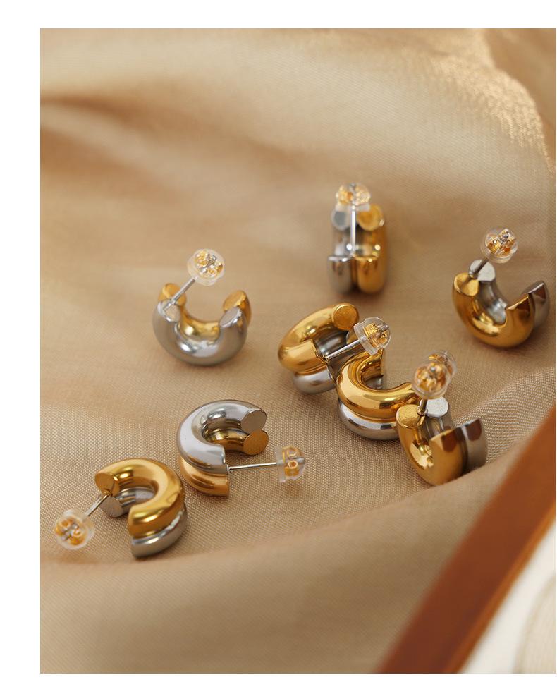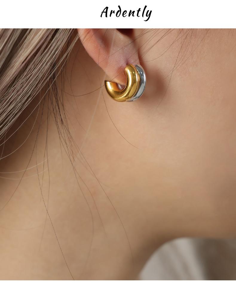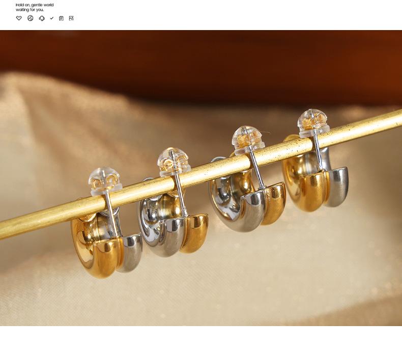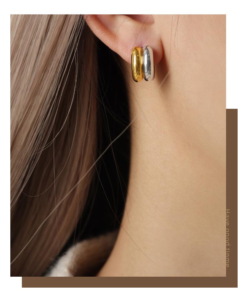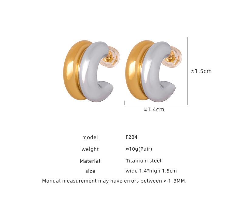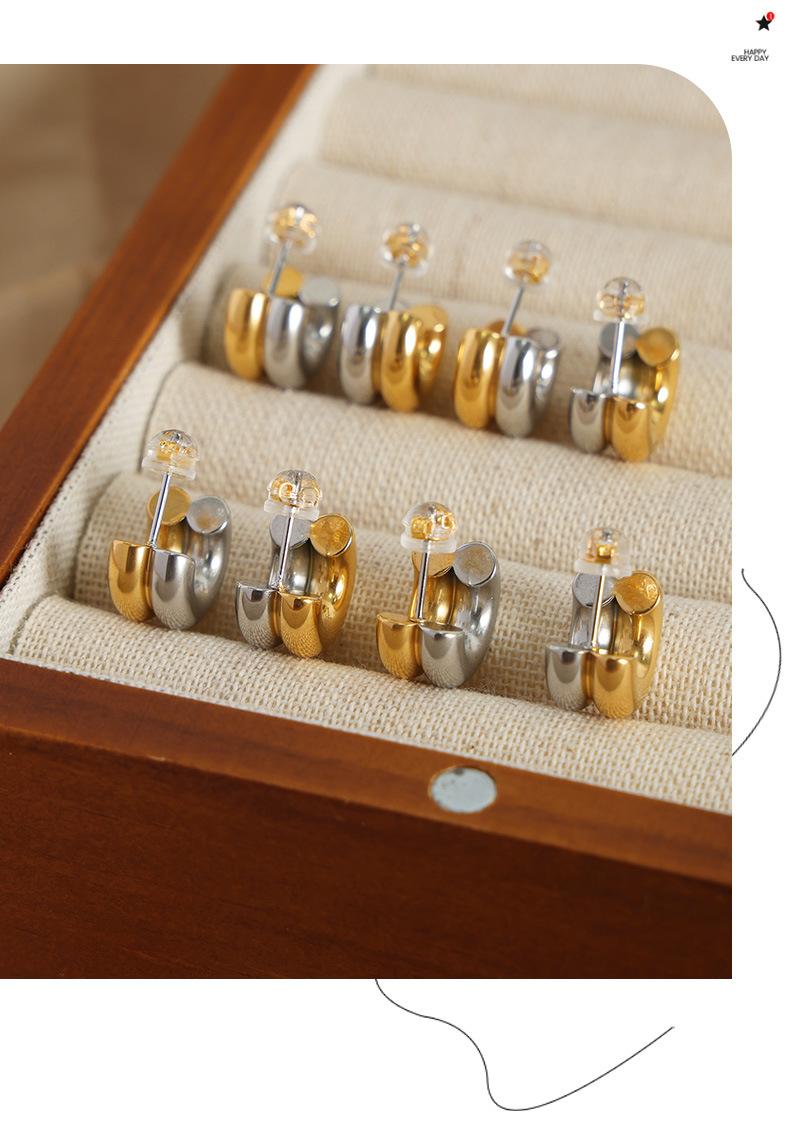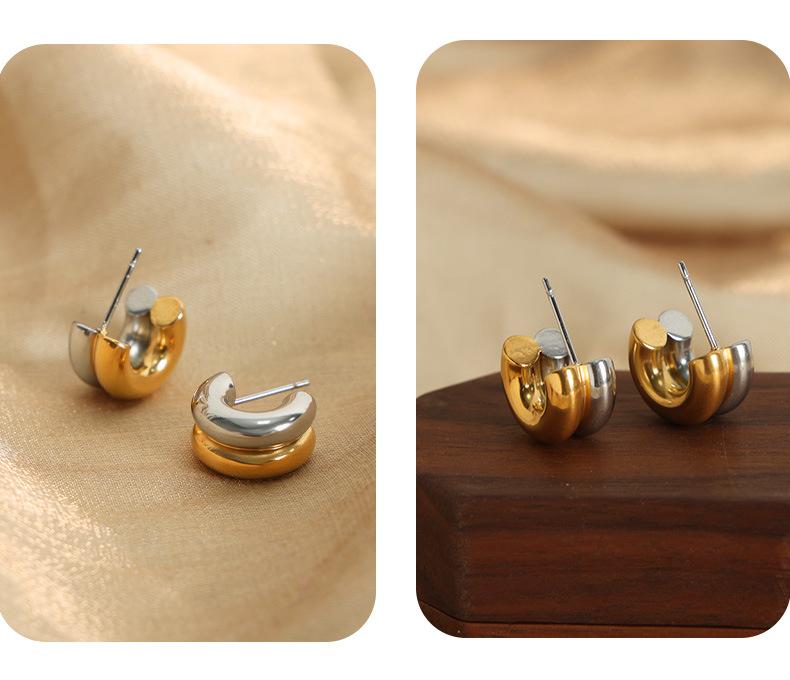 Pendientes de Mujer de Diseño Nicho Simple de Nuevo Estilo Francés de Alta Gama Geométricos de Acero de Titanio Chapados en Oro Moda Distintiva de Doble Capa