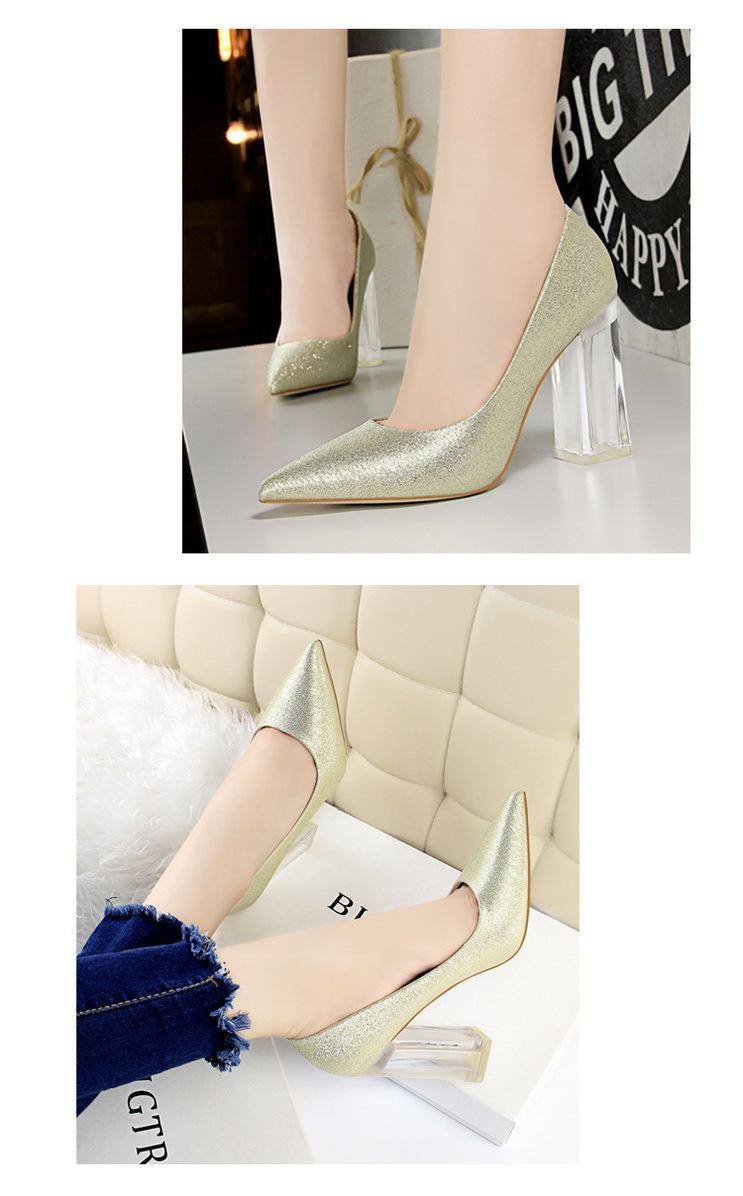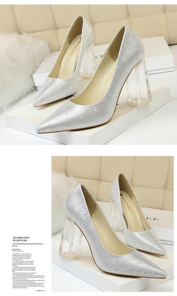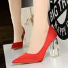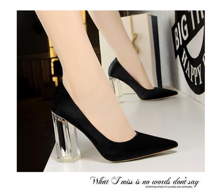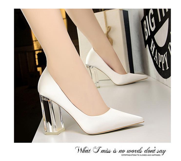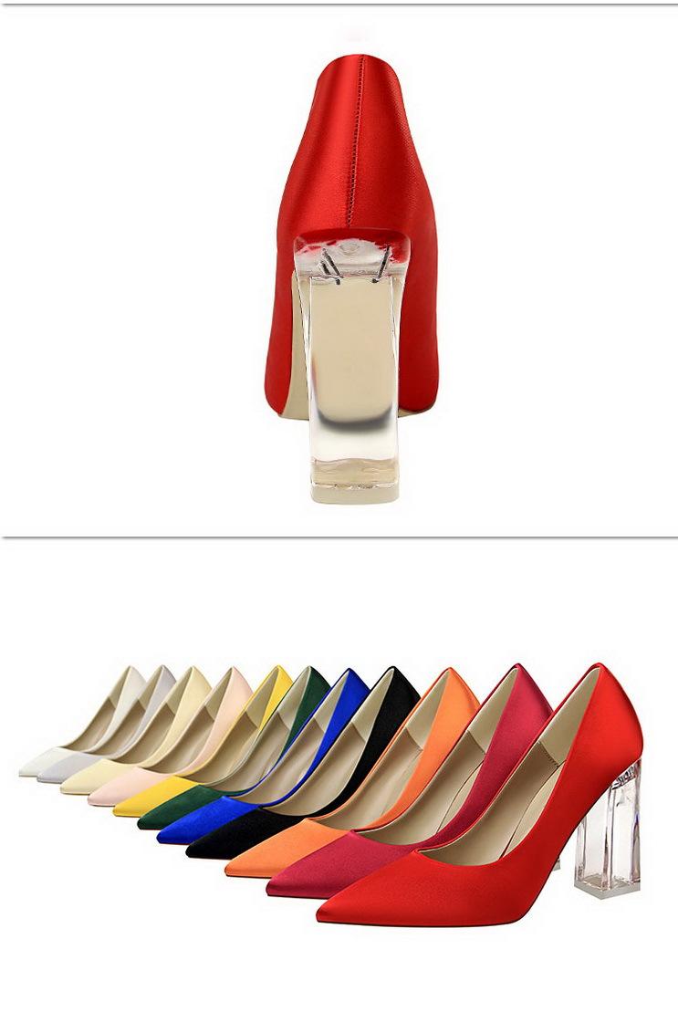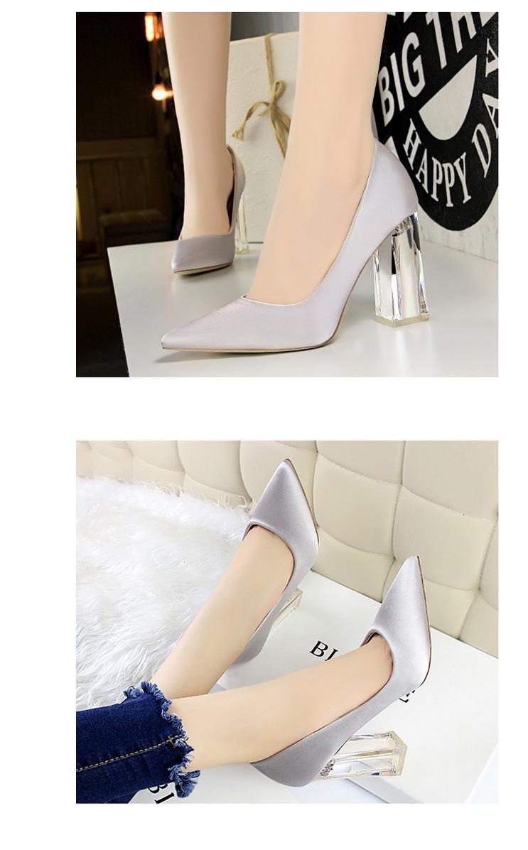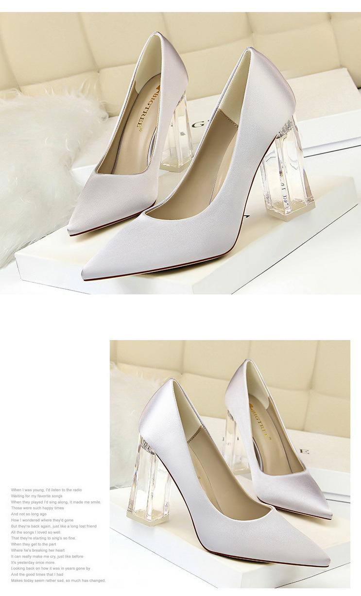 Elementos populares: Estilo coreano moderno y sexy club nocturno adelgazante simple satén tacón transparente tacón de cristal tacón grueso tacón súper alto zapatos de boda