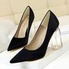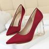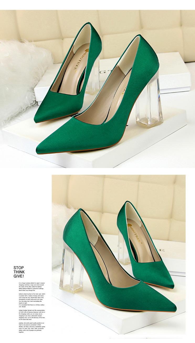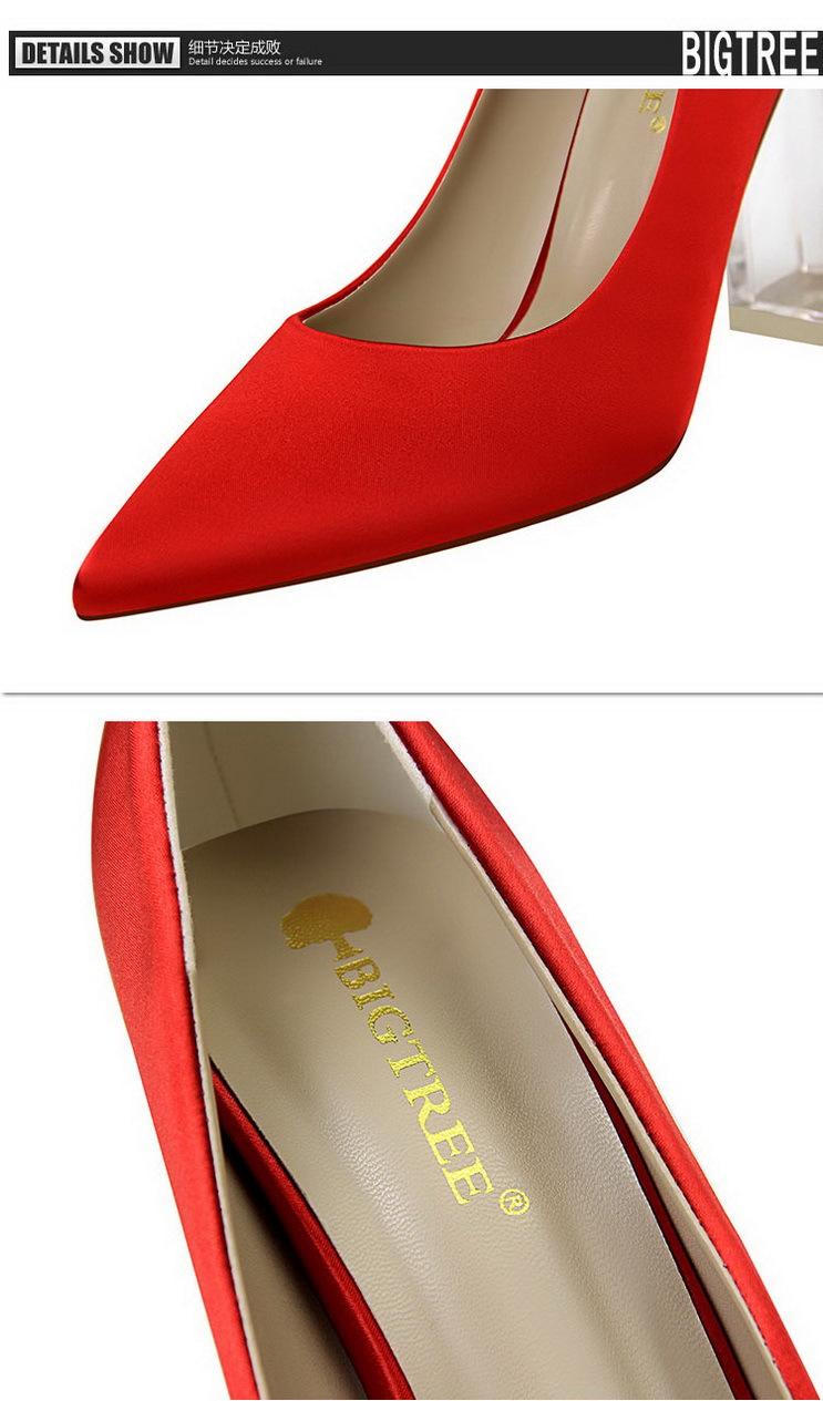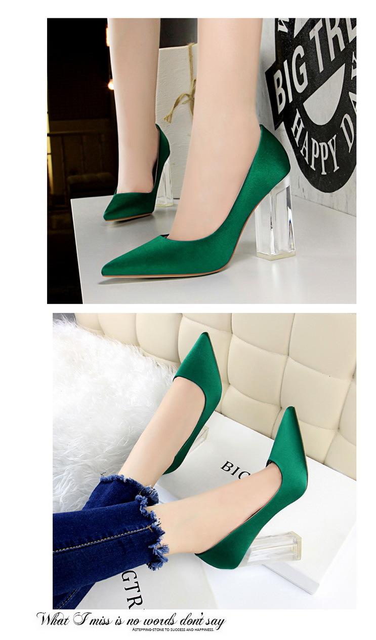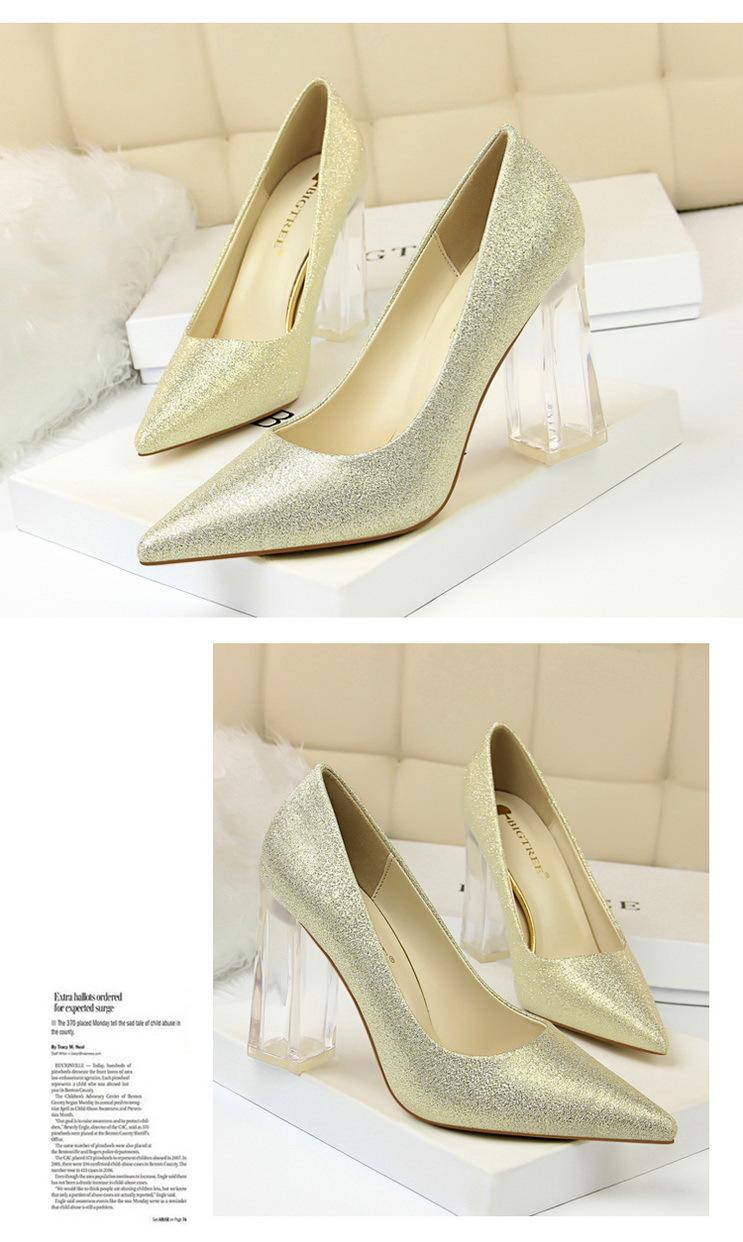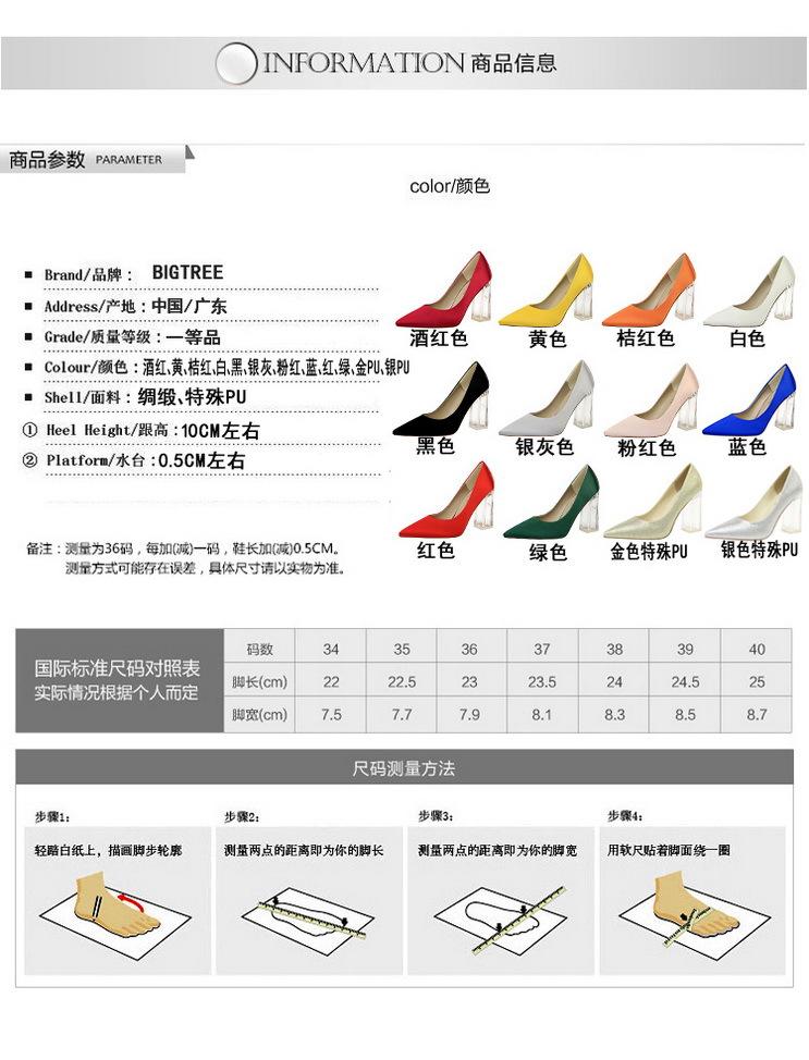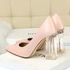 Elementos populares: Estilo coreano moderno y sexy club nocturno adelgazante simple satén tacón transparente tacón de cristal tacón grueso tacón súper alto zapatos de boda