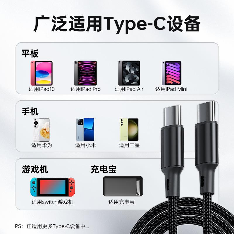 Adecuado para iPhone15/16PD60W línea de carga rápida PD100W línea de datos trenzada doble tipo C línea de carga de teléfono móvil