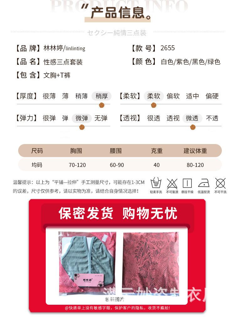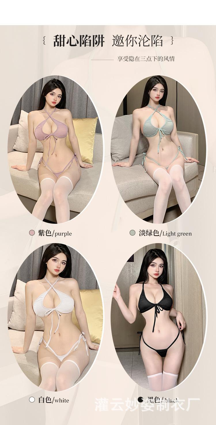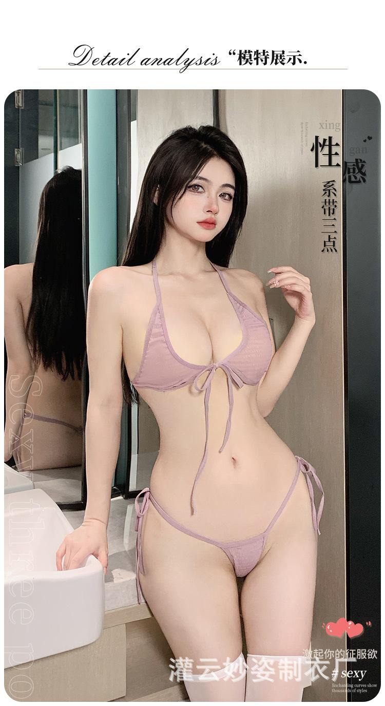 Lencería de Estilo Nuevo para Mujer Sexy Deseo Puro Pecho Pequeño Tres Puntos Cadera Libre Tentación Traje de Cama 2655