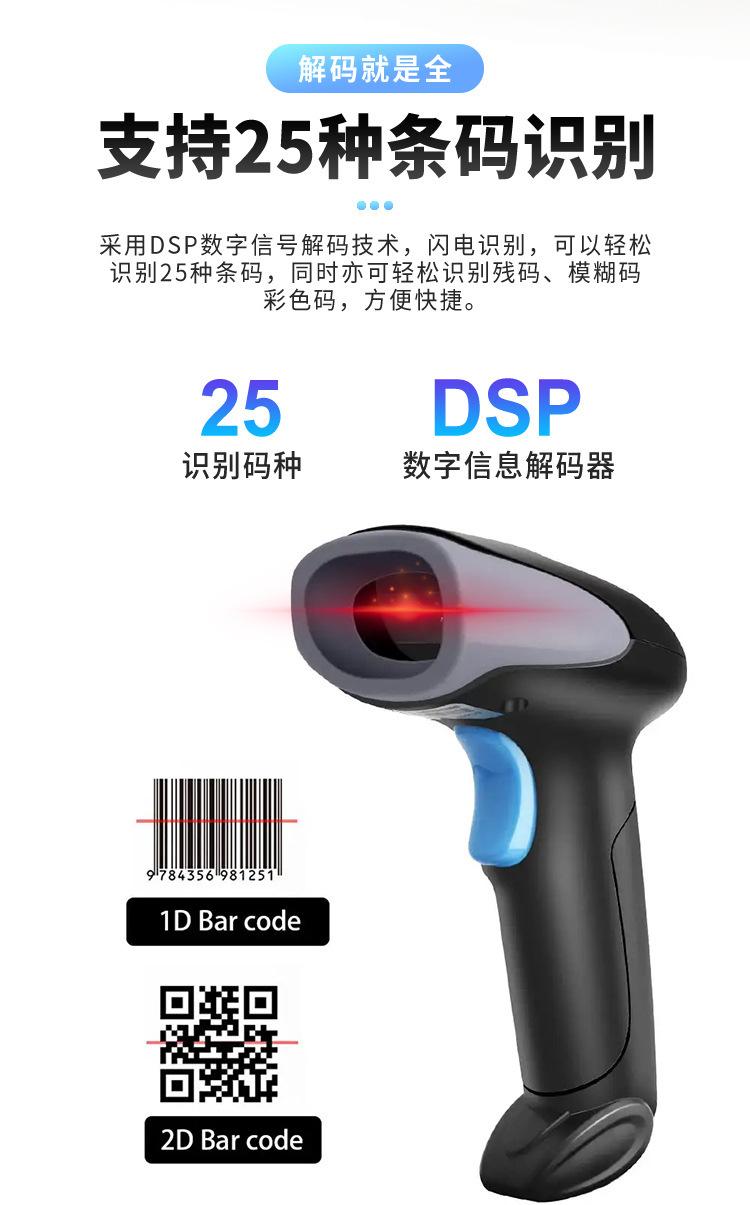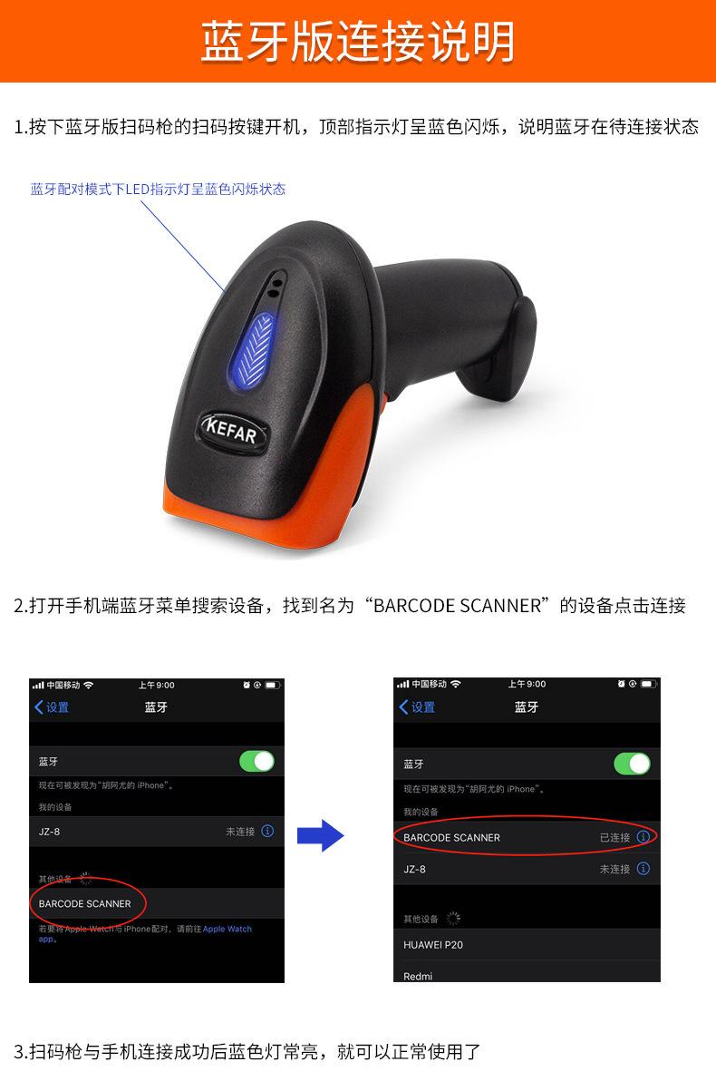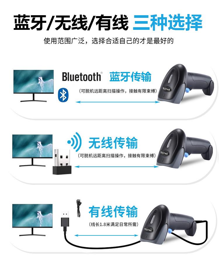 Escáner inalámbrico unidimensional KEFAR, escáner inalámbrico 2.4G, escáner de código de barras bidimensional, pistola de escaneo, fabricante de pistolas, suministro exclusivo transfronterizo