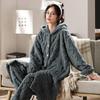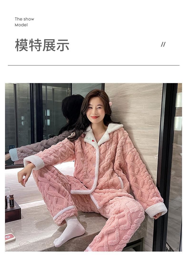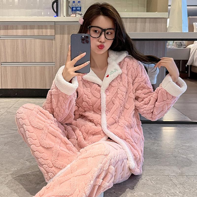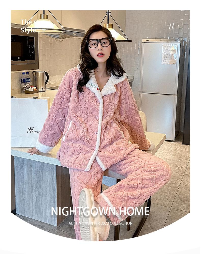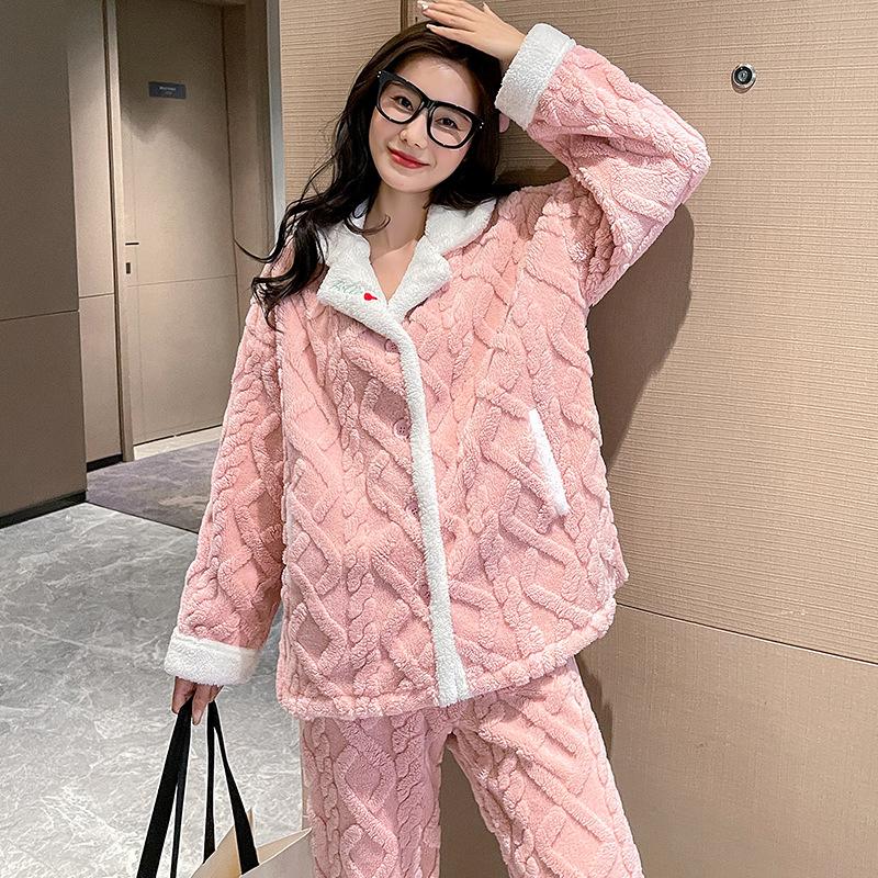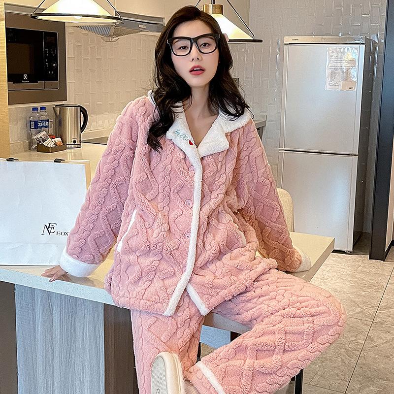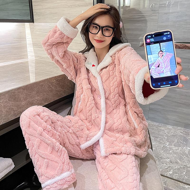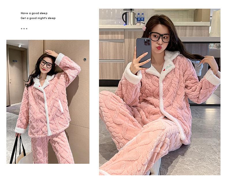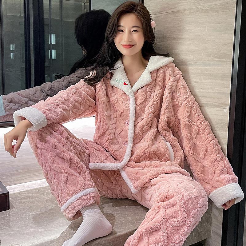 Otoño e Invierno Populares Forro Polar Coral Dulce y Lindo Pijama Casual para Casa Que Se Puede Usar Afuera Set Cárdigan para Mujer