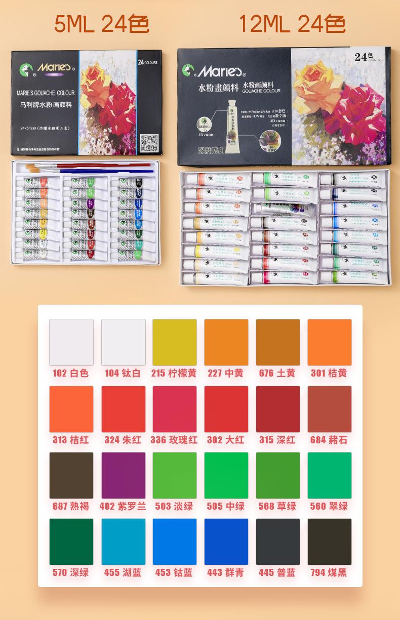 Pintura Gouache Marley 12 Colores 24 Colores Estudiante Recarga Acuarela Gouache Set de Pintura Materiales para Pintar a Color