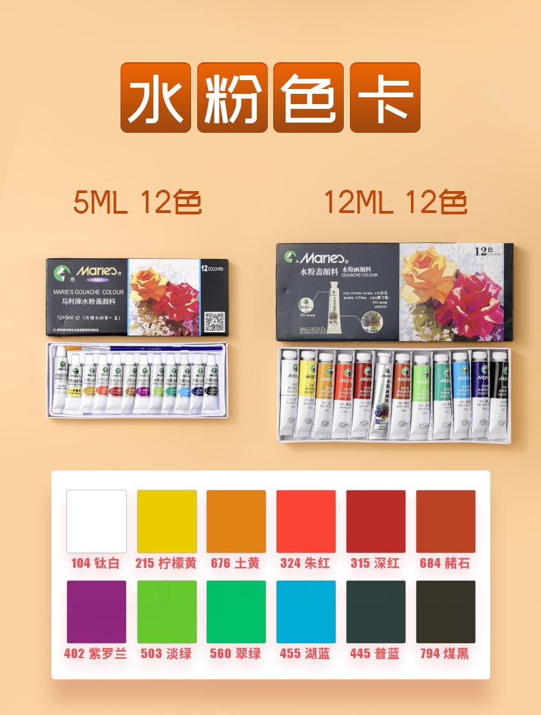 Gouache 12 colors/5ml/12 pieces, Gouache 12 colors/5ml/17 pieces, Gouache 12 colors 5ml/send 17 + toolbox, Gou...